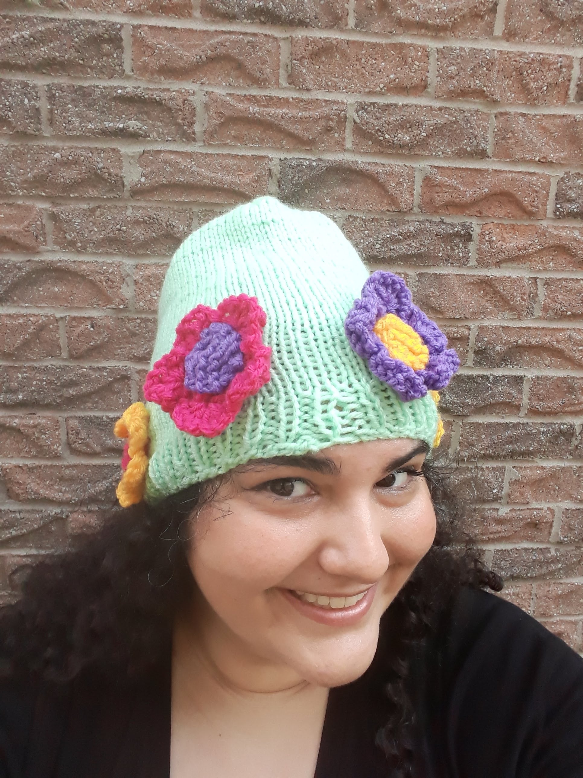 Stay wild, flower child. This bright and quirky hat has 3D knit flowers all over it. It's perfect for keeping springtime energy going all year long.