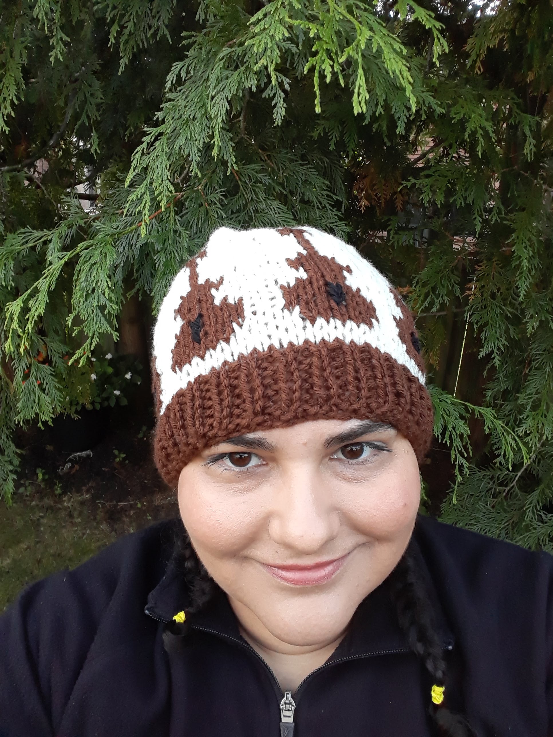 Handknit in Canada, 100% acrylic yarn. Can go in the washing machine; air dry recommended. One size fits most adults.