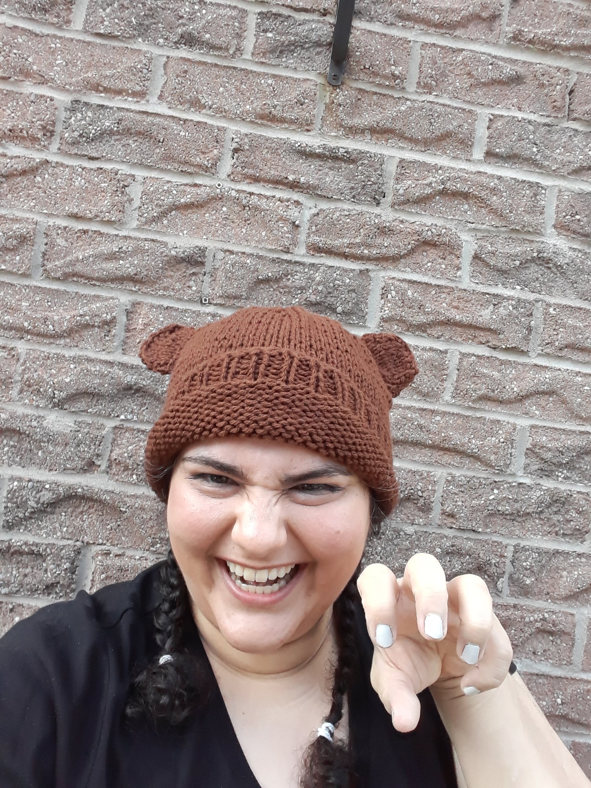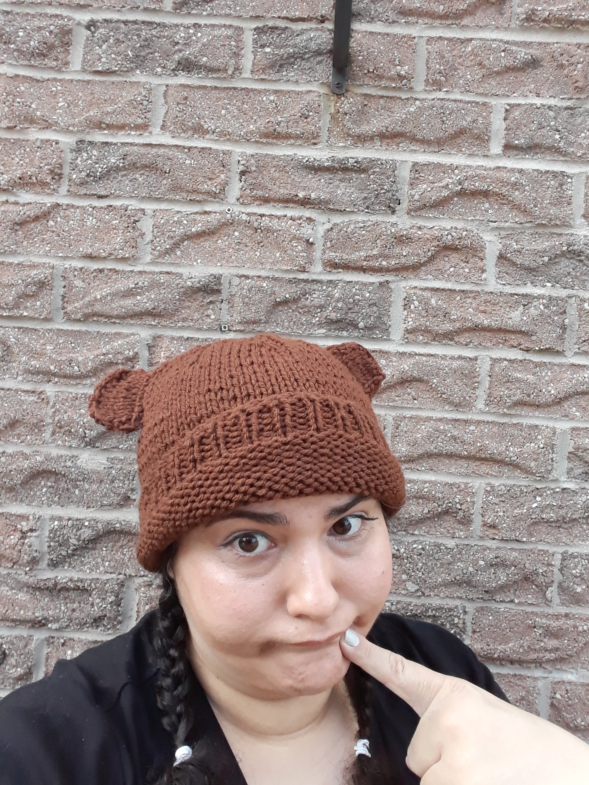 Some hats are too boring. Some hats are too silly. But this hat is juuuuuuust right! This plain brown hat is toned-down enough to match any outfit while the cute little ears add a touch of whimsy.