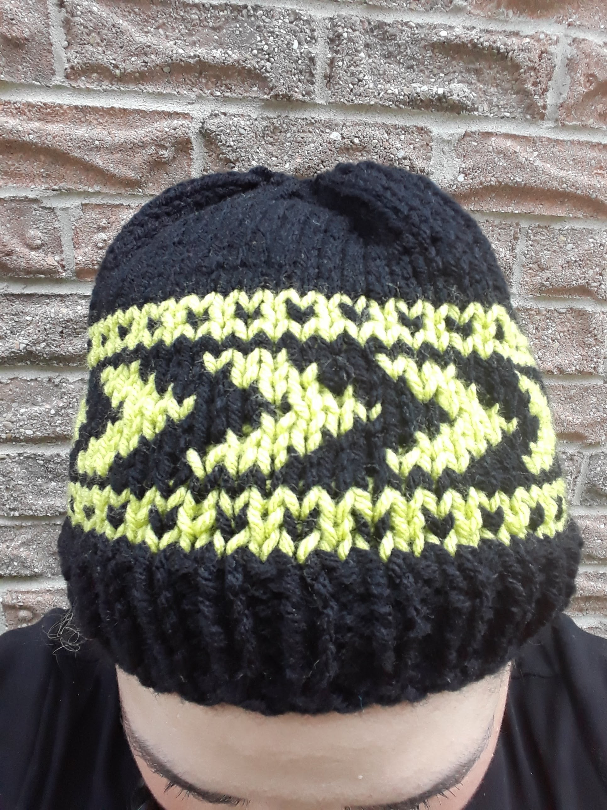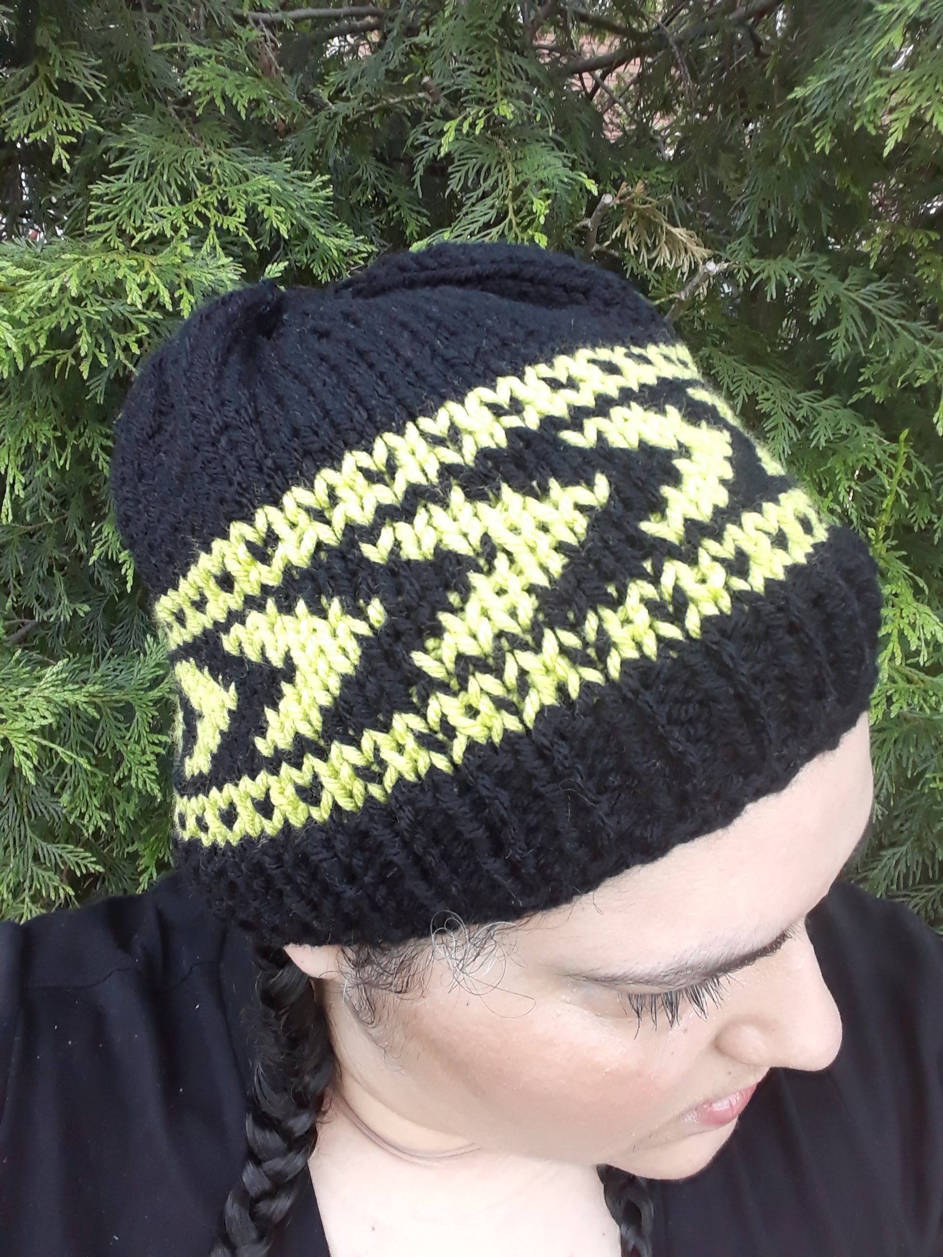 Here's a hat with a sleek chevron motif. It's ideal for the cool weather in fall and spring or for an added layer of warmth in winter. Wouldn't this look great paired with a black jacket?
