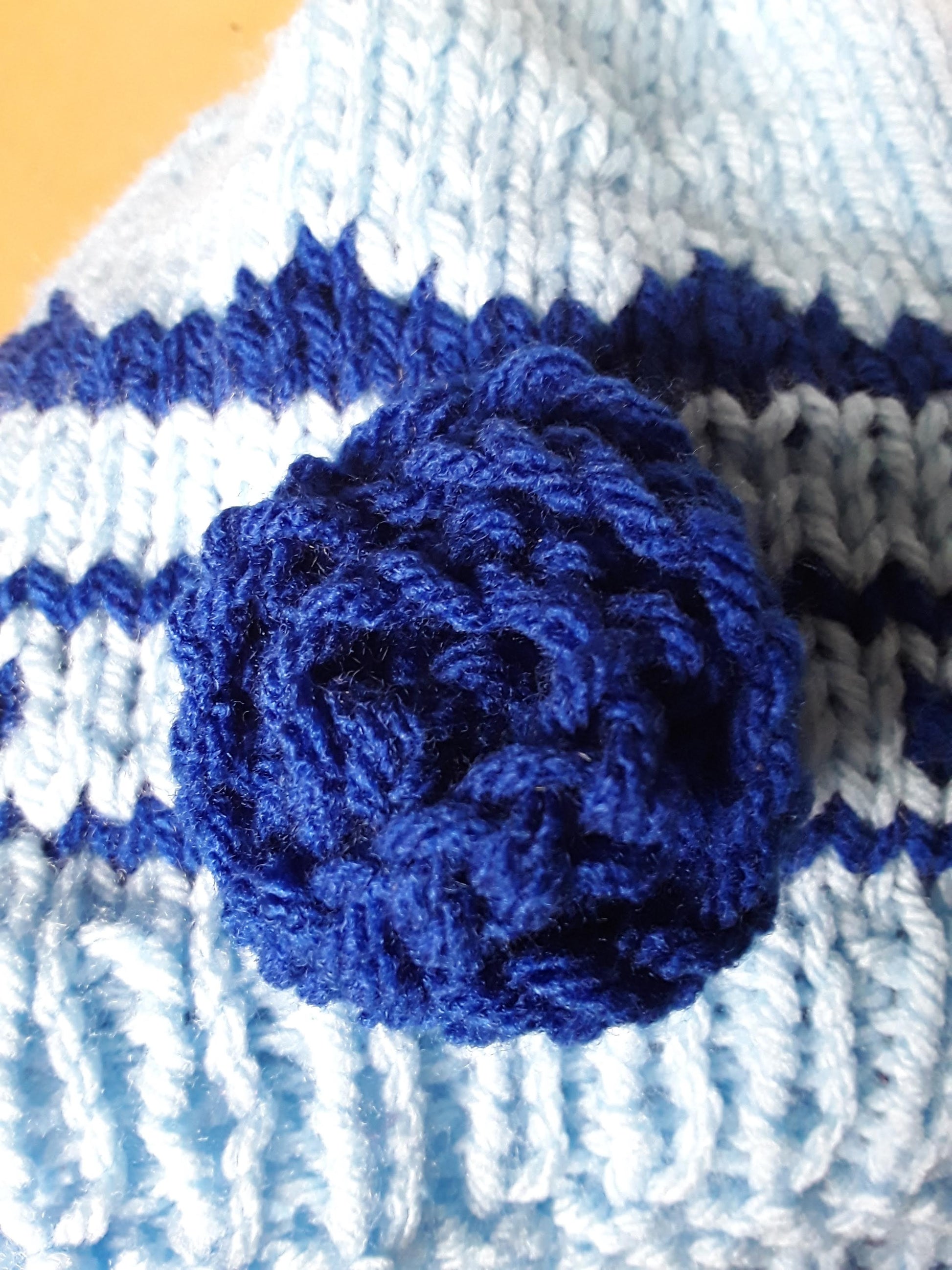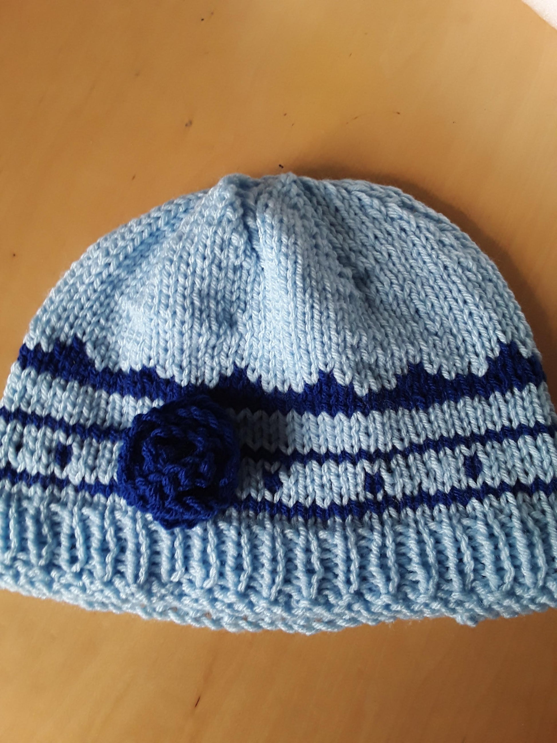 This handmade hat features beautiful classy geometric patterns and a lovely rose accent. It's perfect for someone who wants a fun but subtle hat to compliment their style.