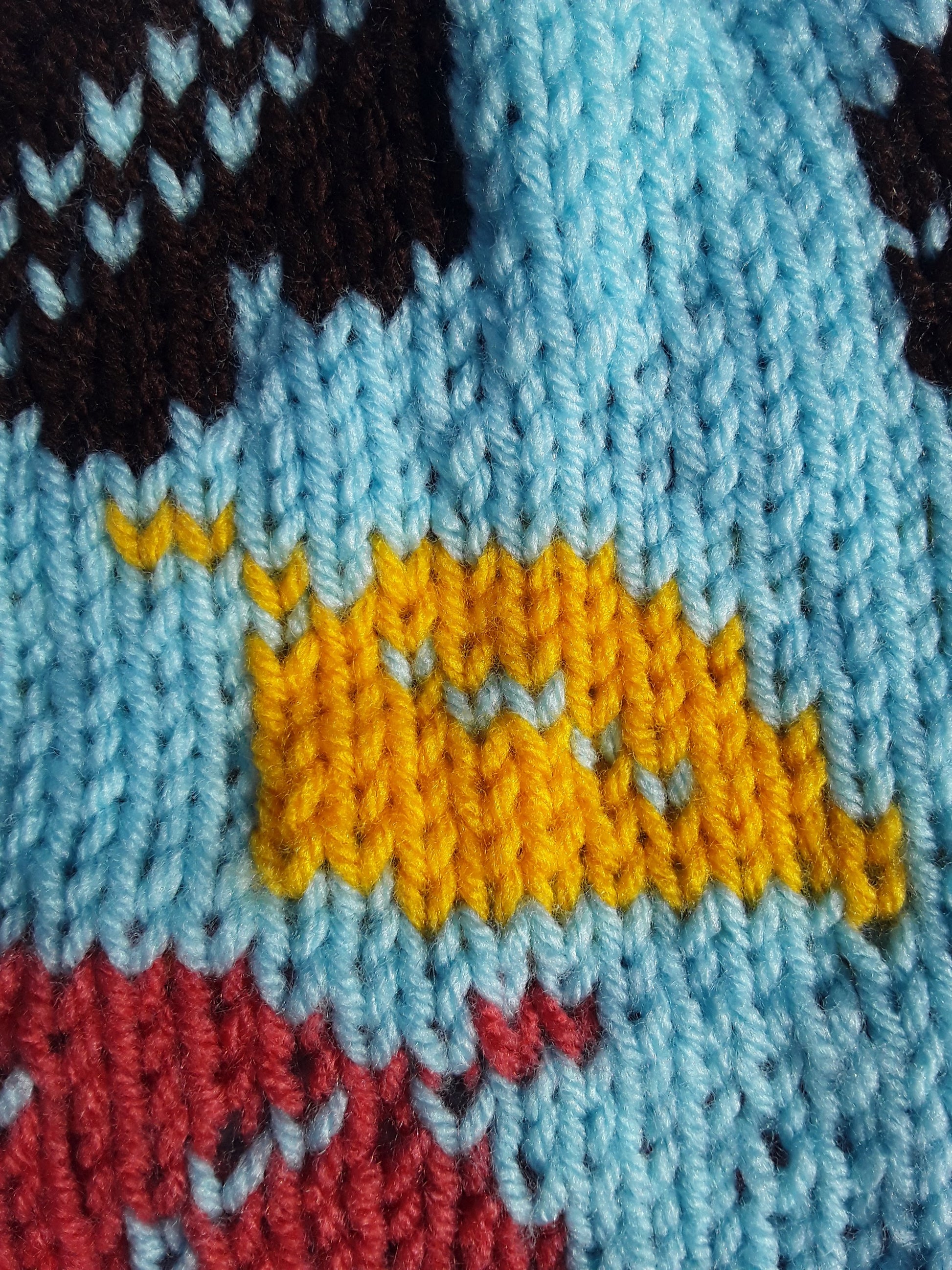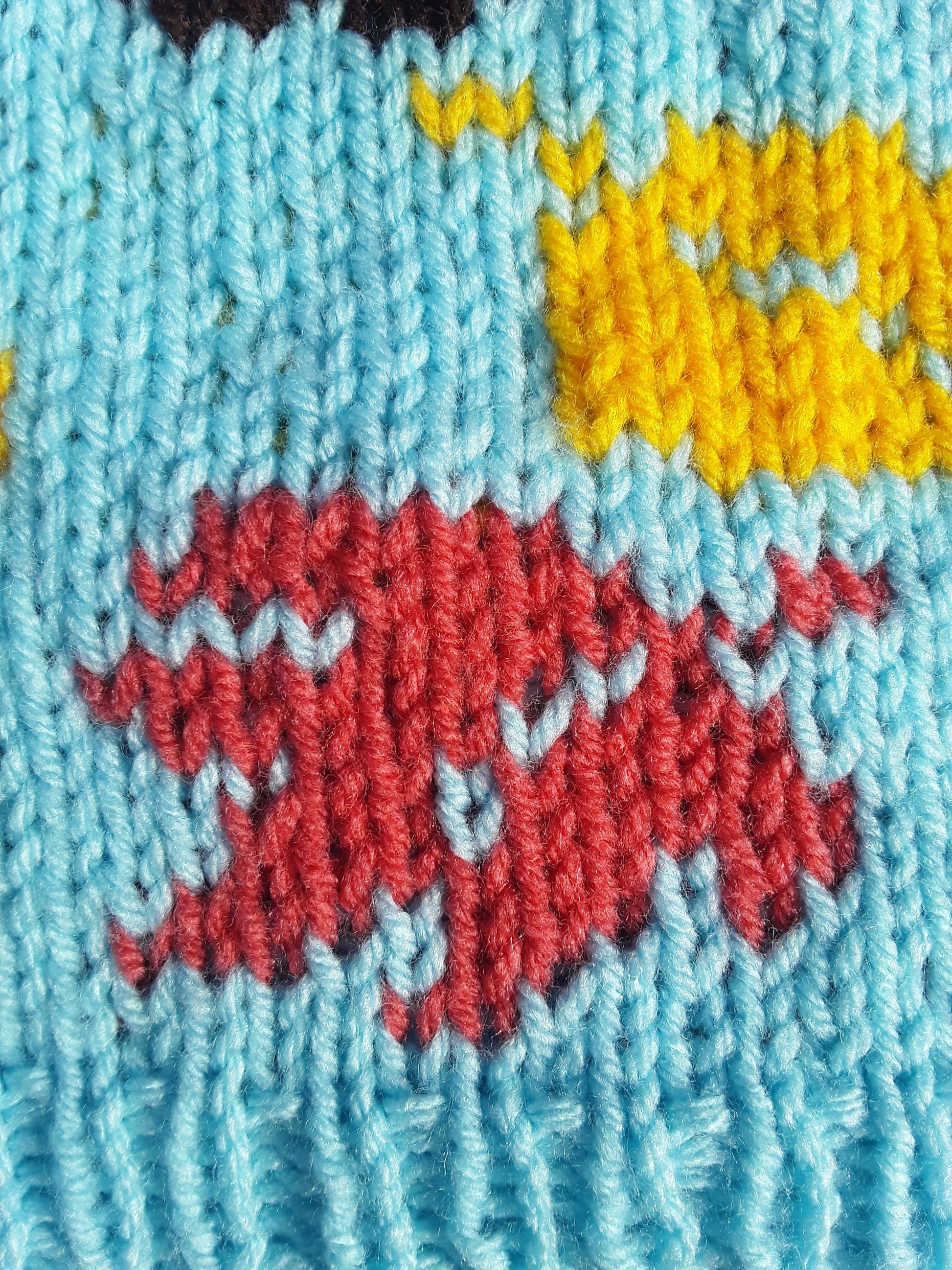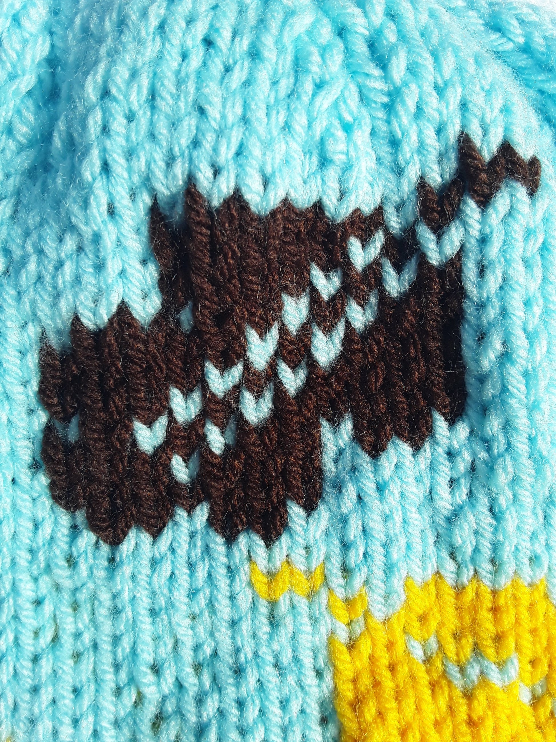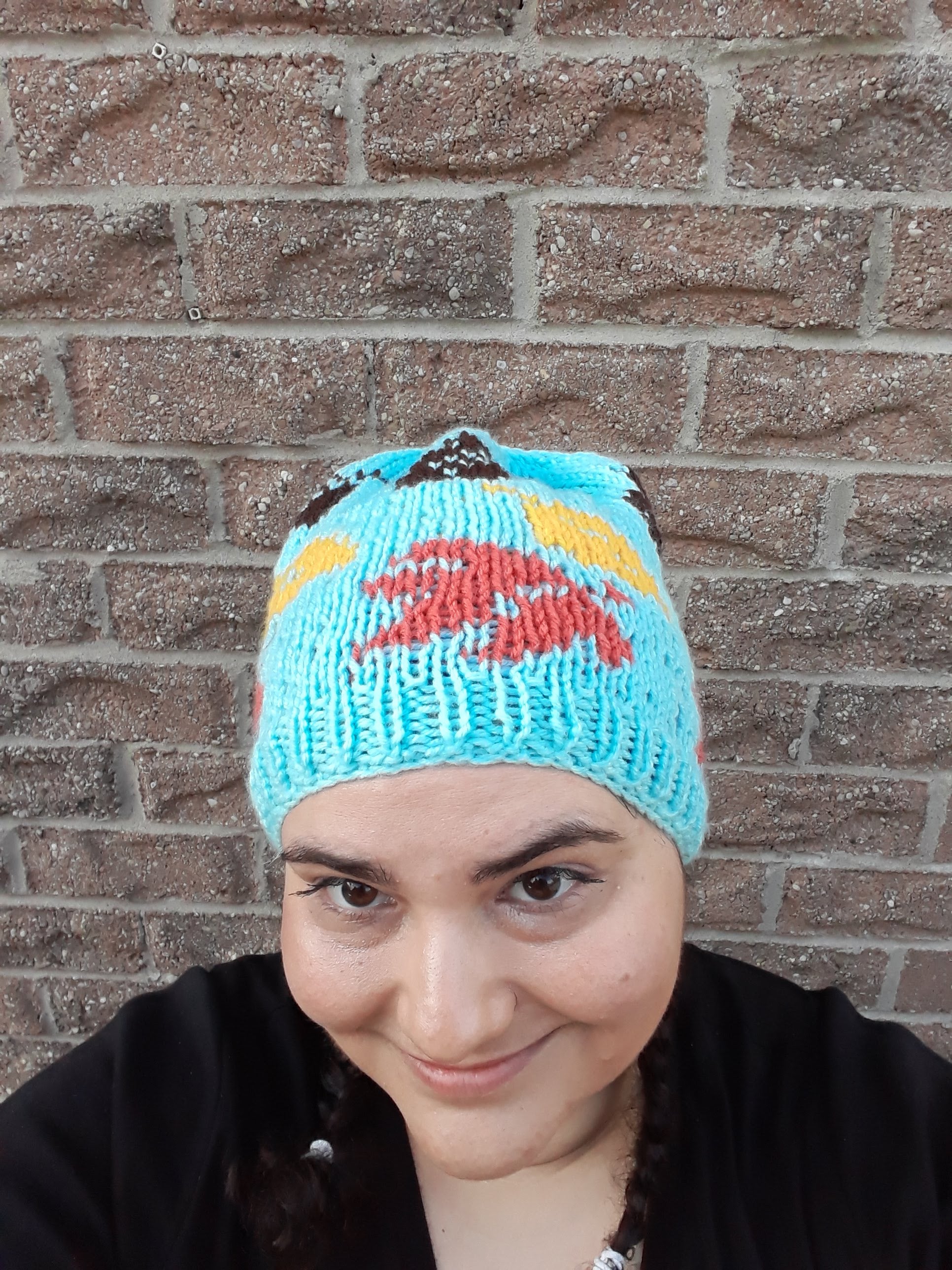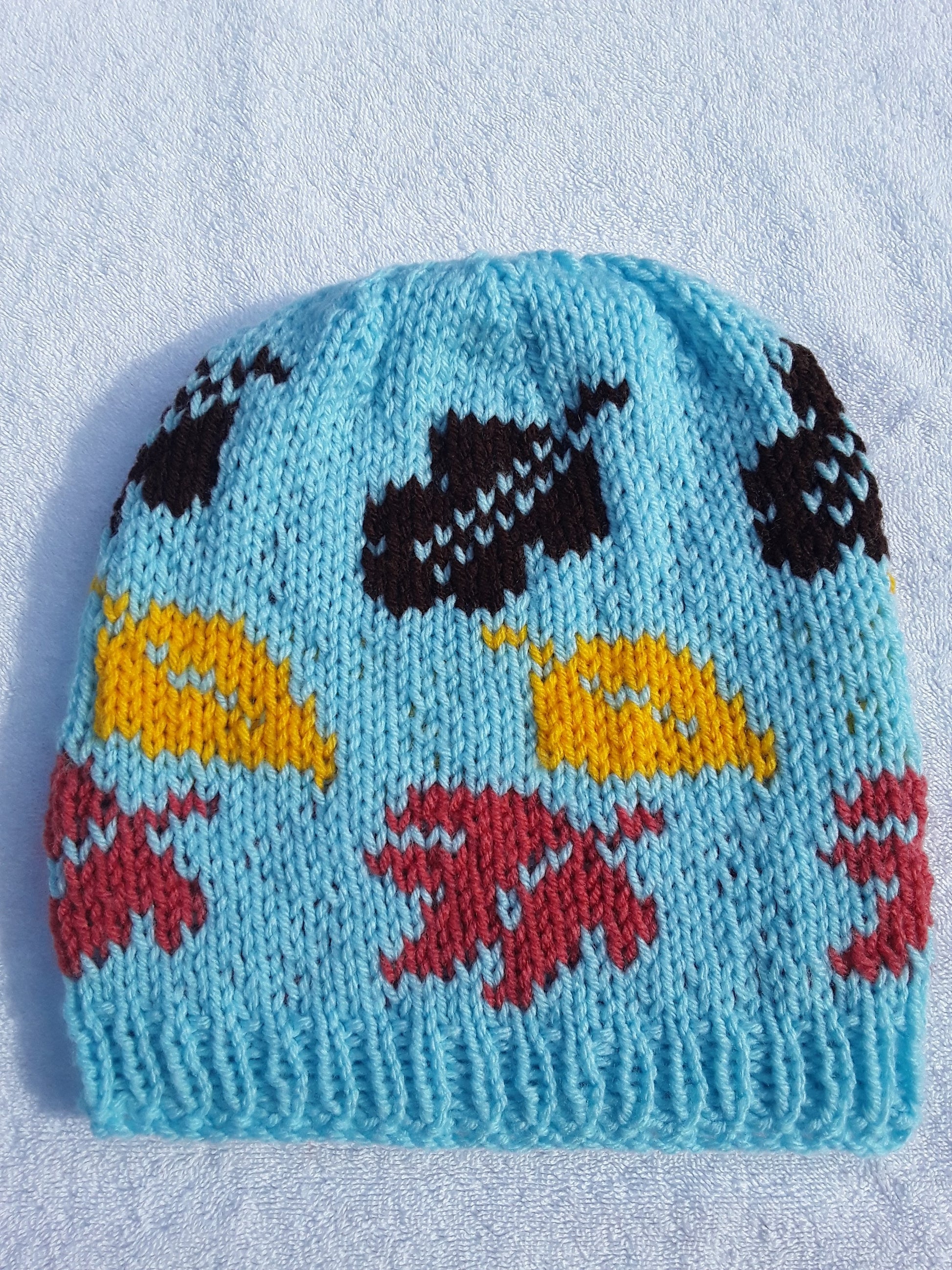 Enjoy the beauty of fall all year long with this colourful knit hat. The distinctive leaves of oak, elm/birch, and maple gracefully decorate this special item.