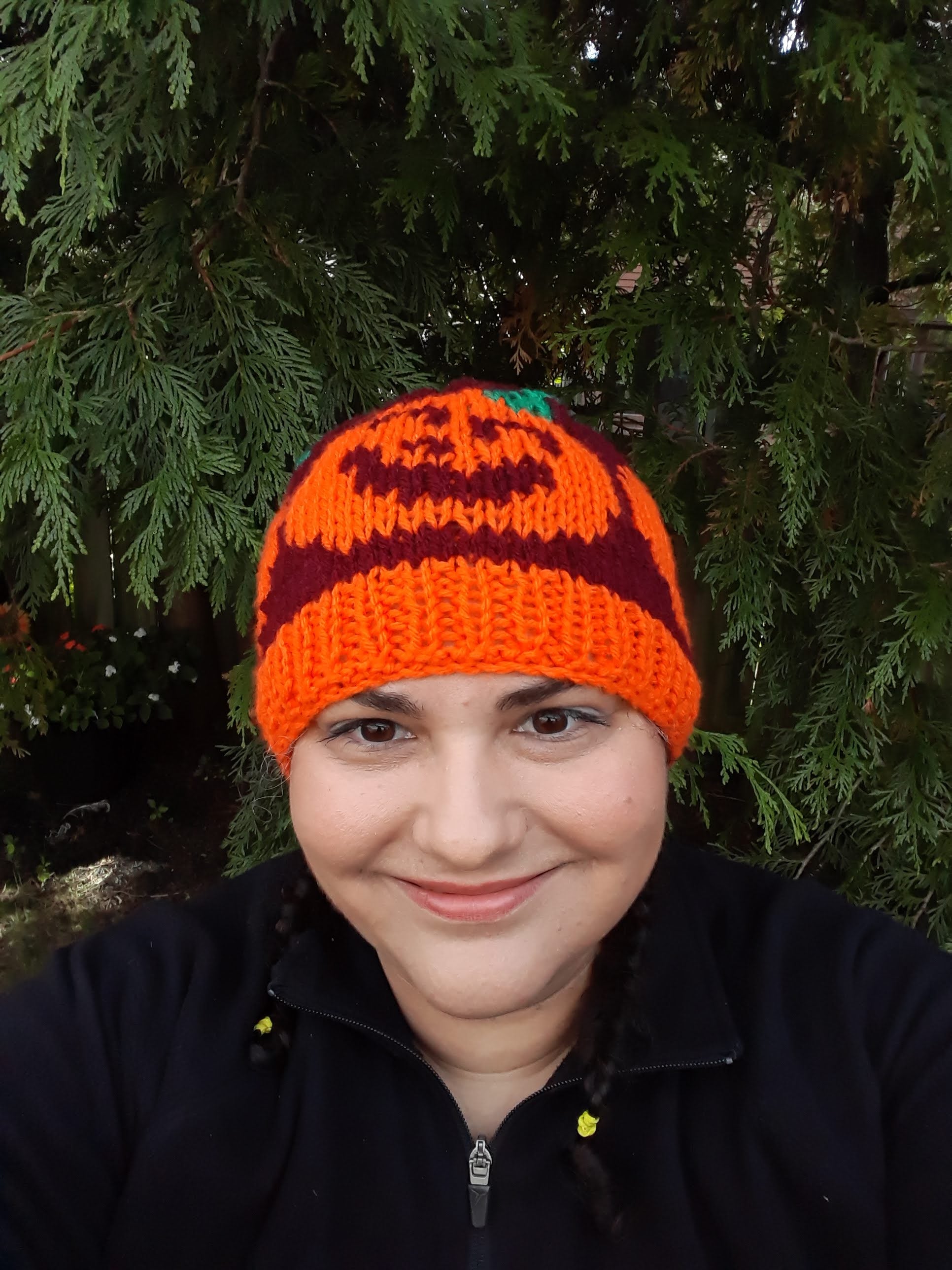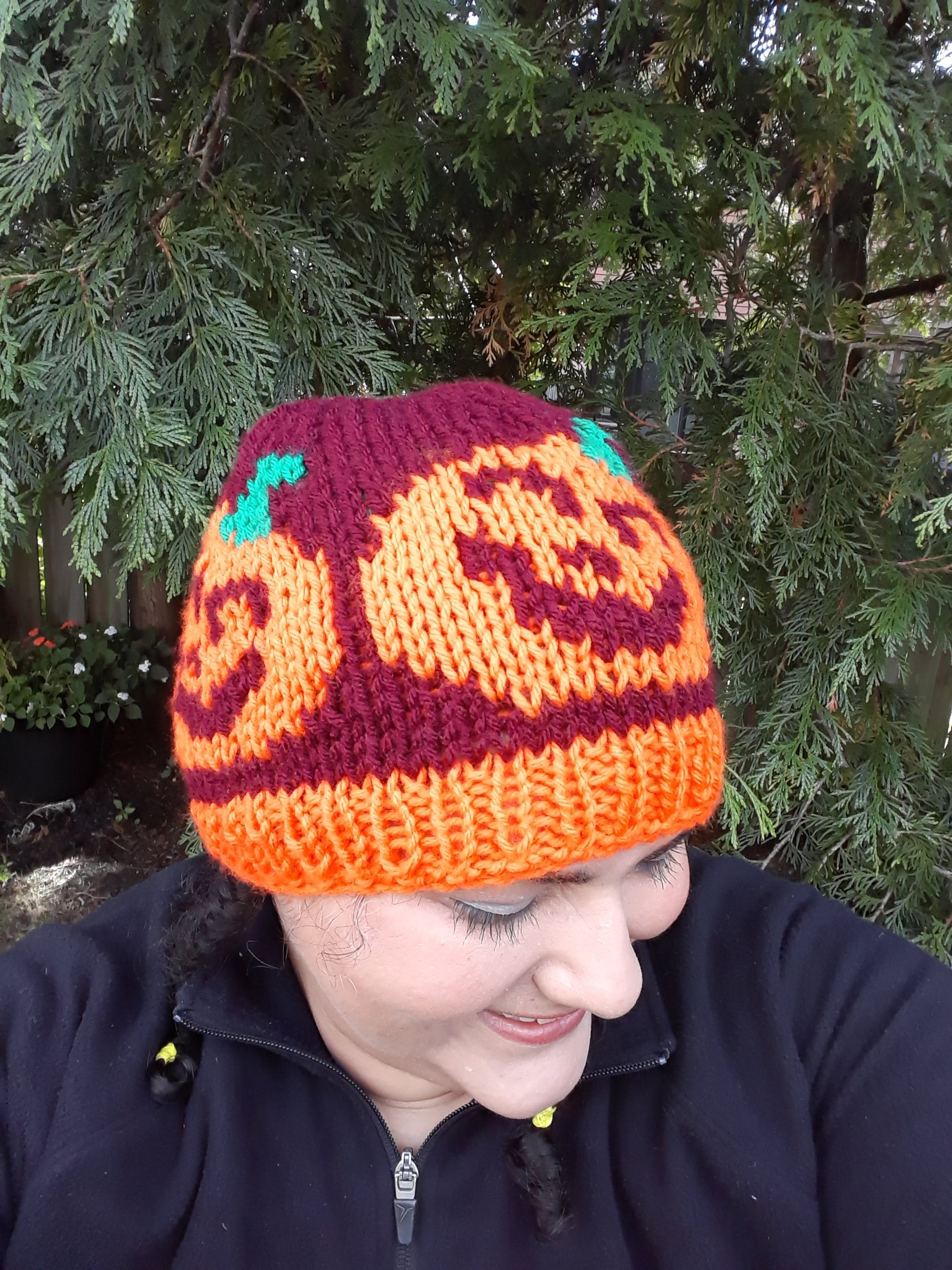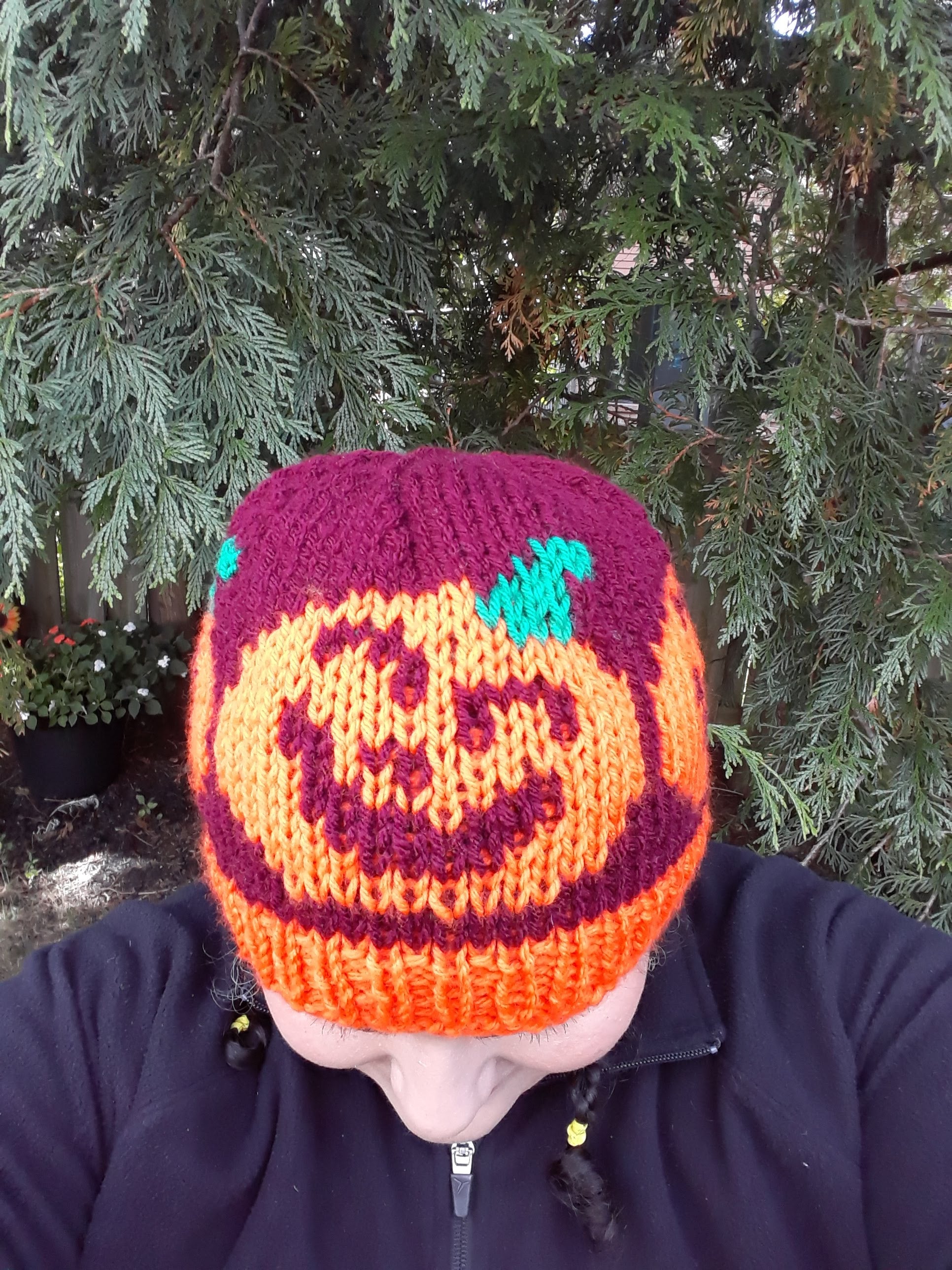 It's big, it's bright, and it's perfect for anyone who loves warm colours. Enjoy all the fun of fall in this burgundy pumpkin hat.
