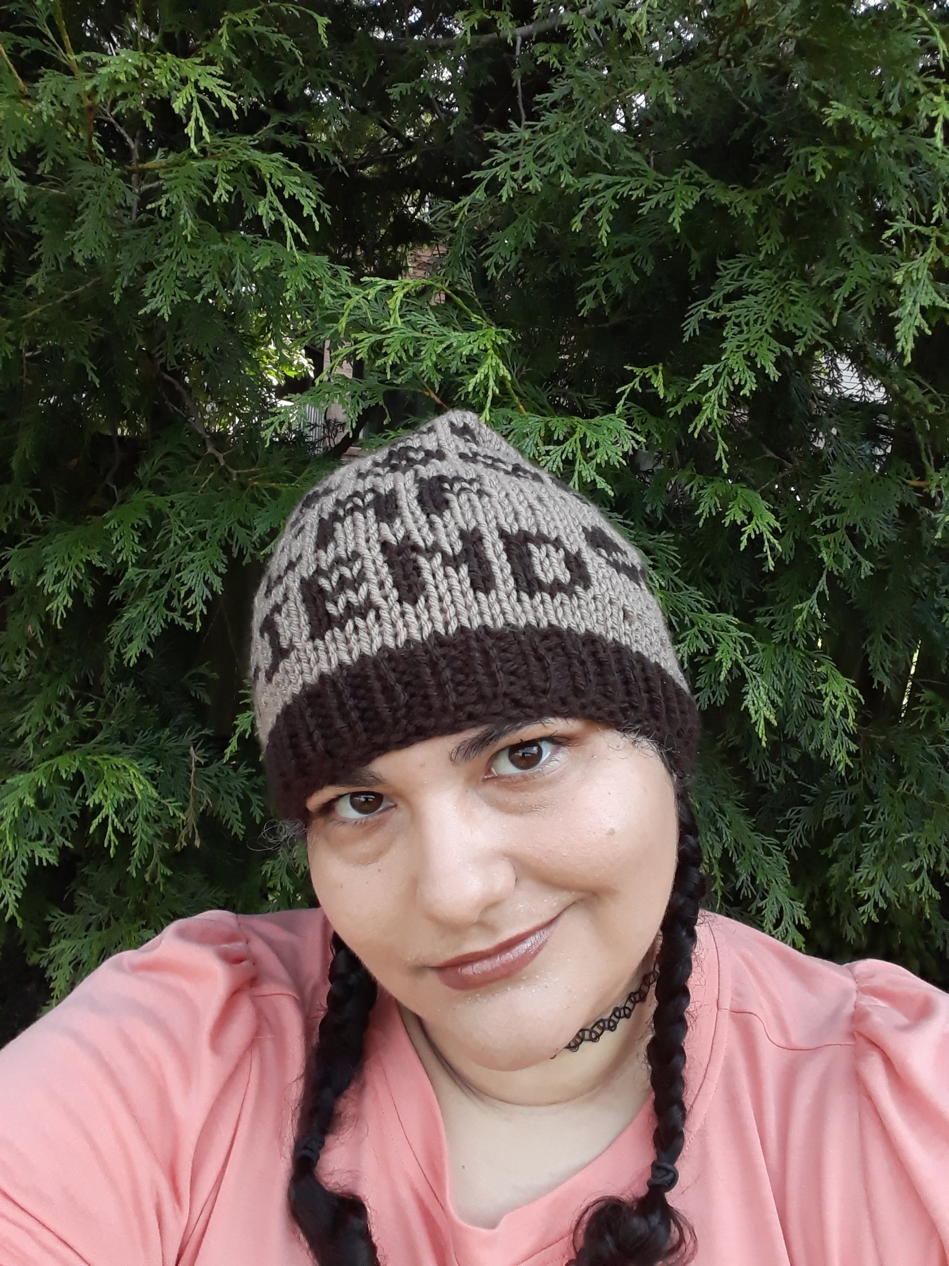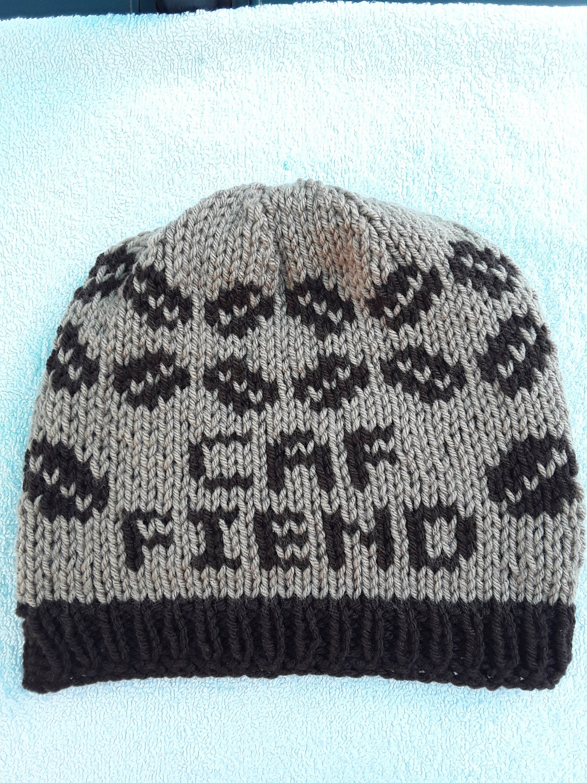 Shopping for someone who loves coffee a little too much? This hat is covered in coffee beans and the words "caf fiend." The lovely brown colour is reminiscent of a freshly brewed cup.
