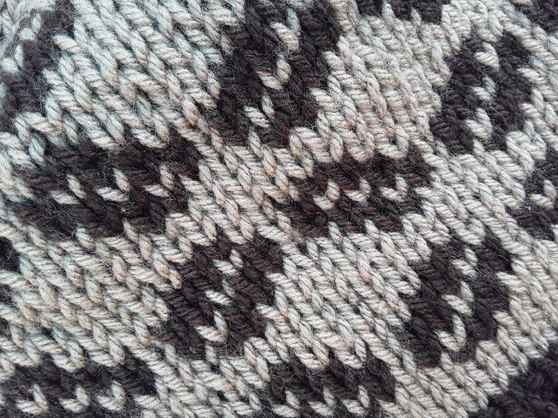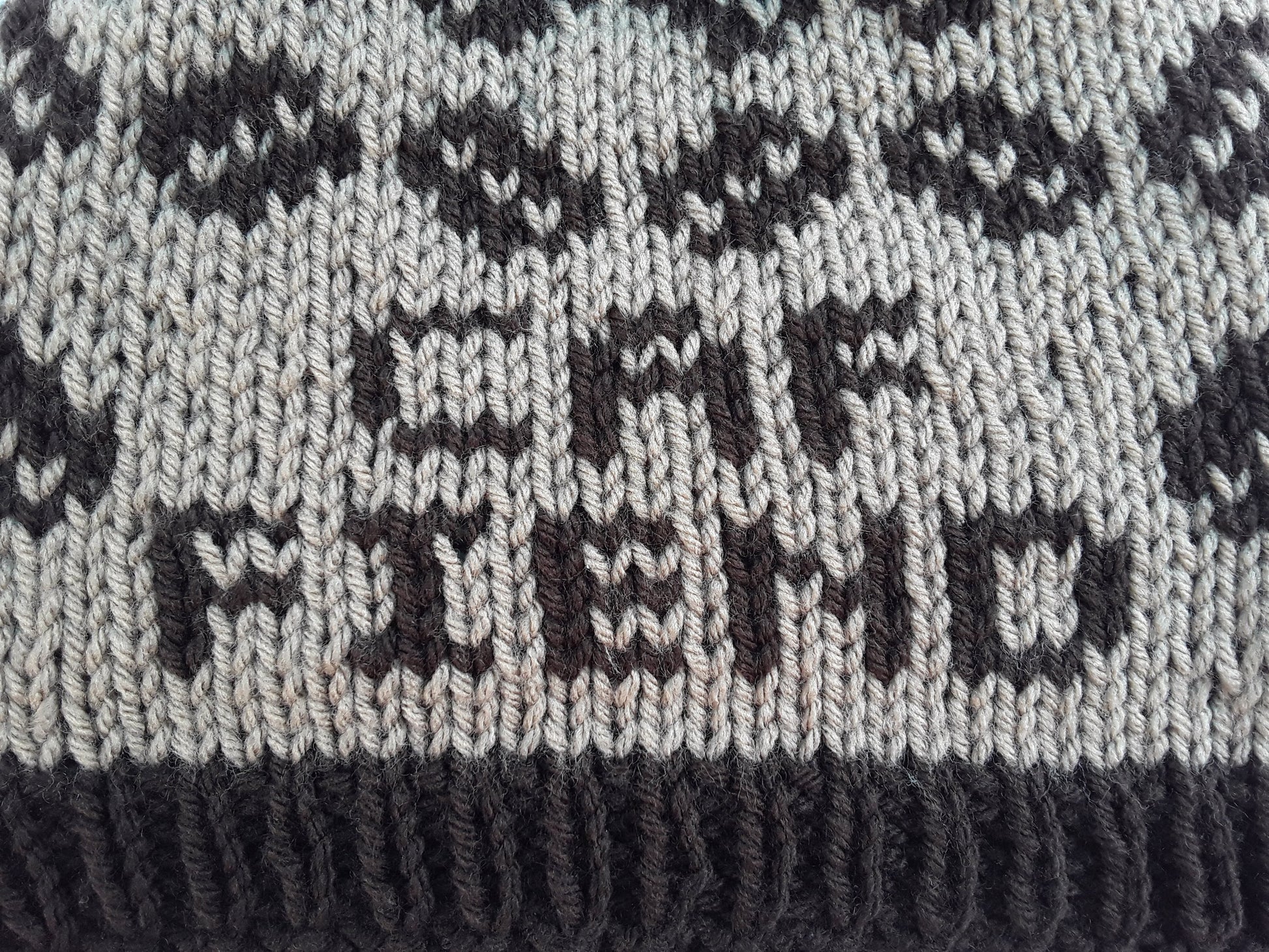 Handknit in Canada, 100% acrylic yarn. Can go in the washing machine; air dry recommended. One size fits most adults.