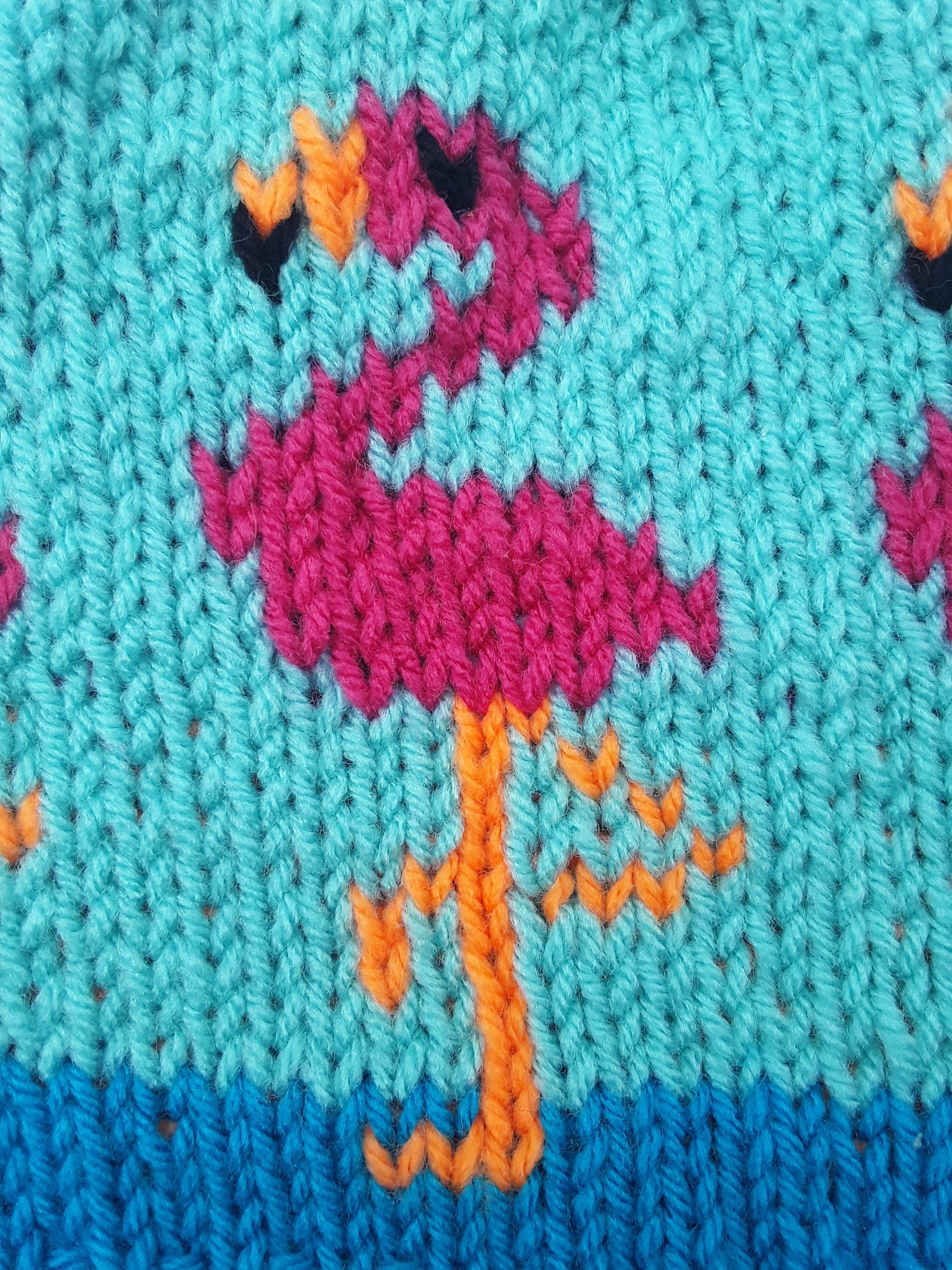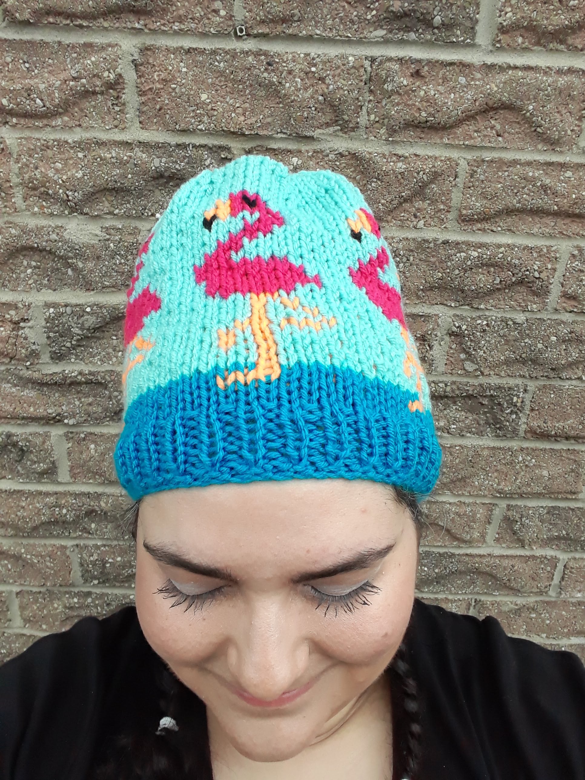 If you love vibrant summertime shades, this hot pink and bright blue flamingo hat is for you.