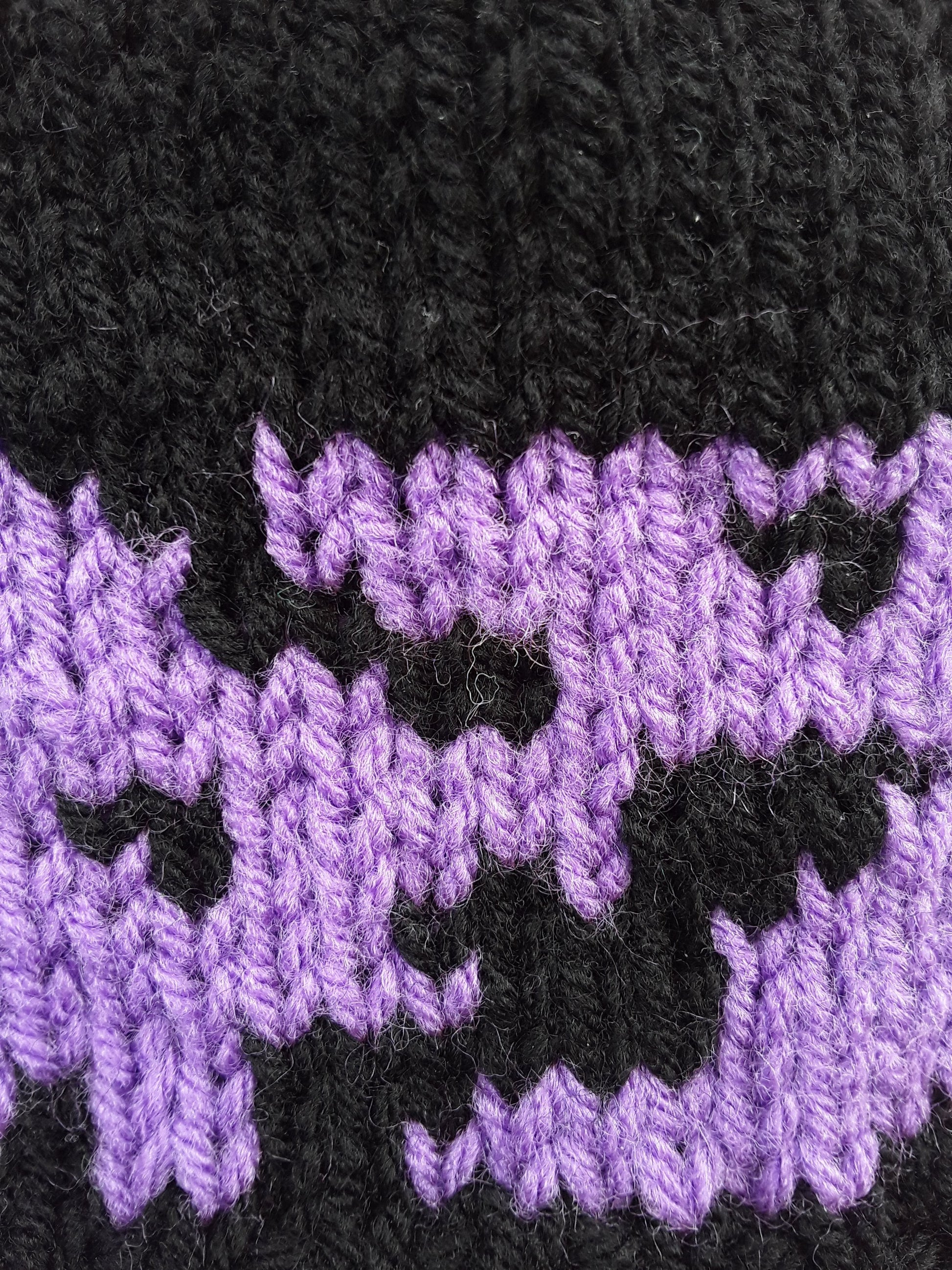 Get in touch with your inner vampire with this cool fall hat. It features a colony of bats taking flight. Available in three different colours: red, grey, and purple.