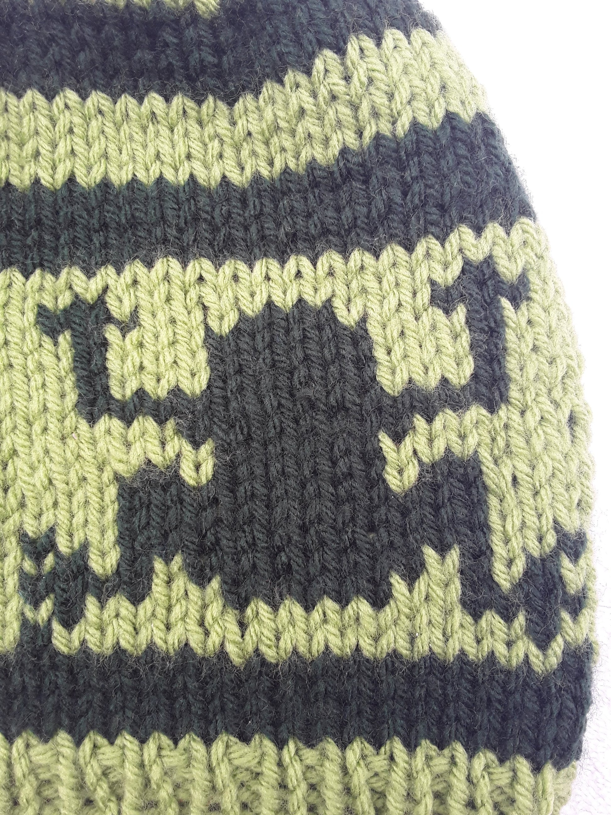 Handknit in Canada, 100% acrylic yarn. Can go in the washing machine; air dry recommended. One size fits most adults.