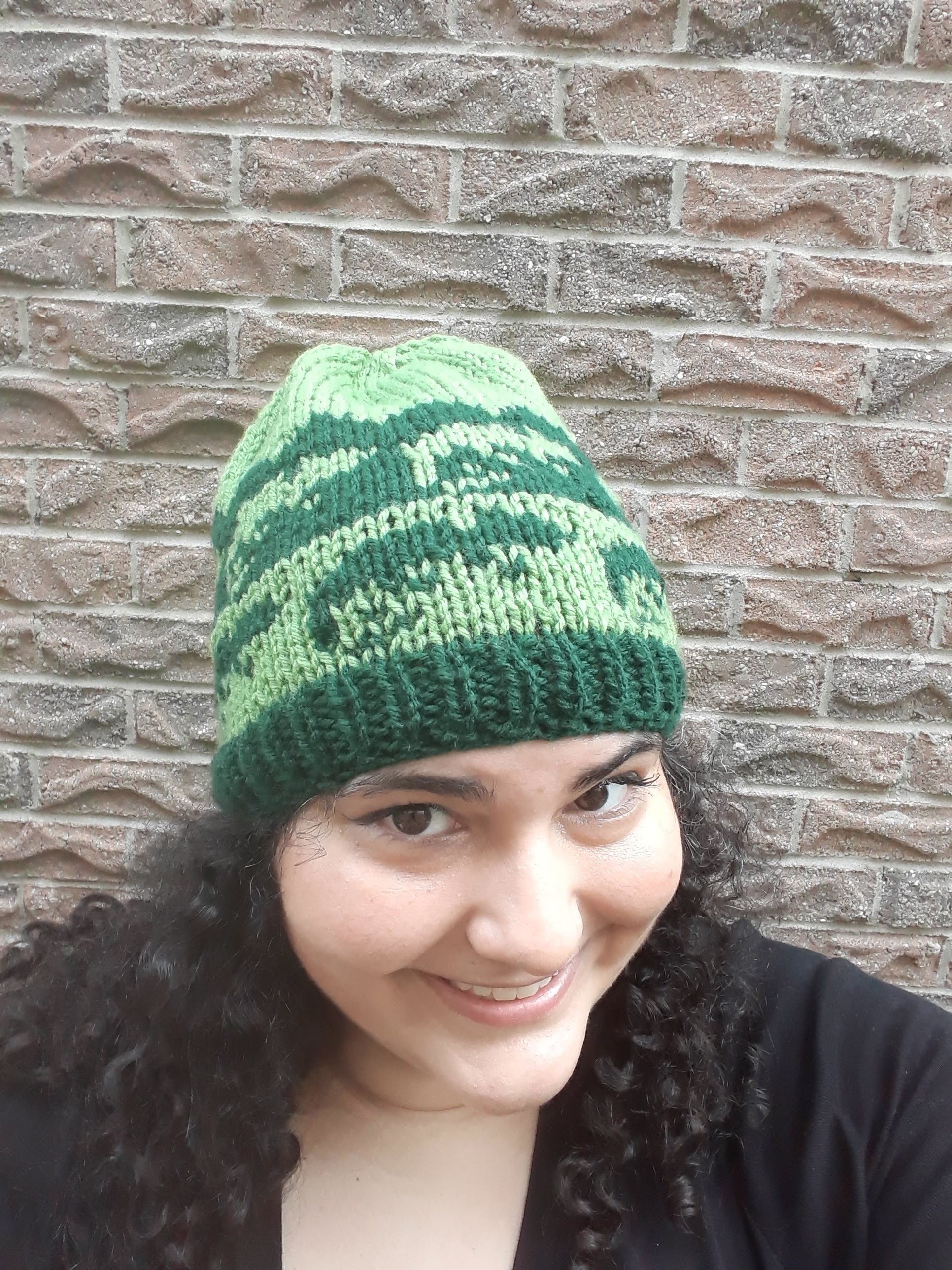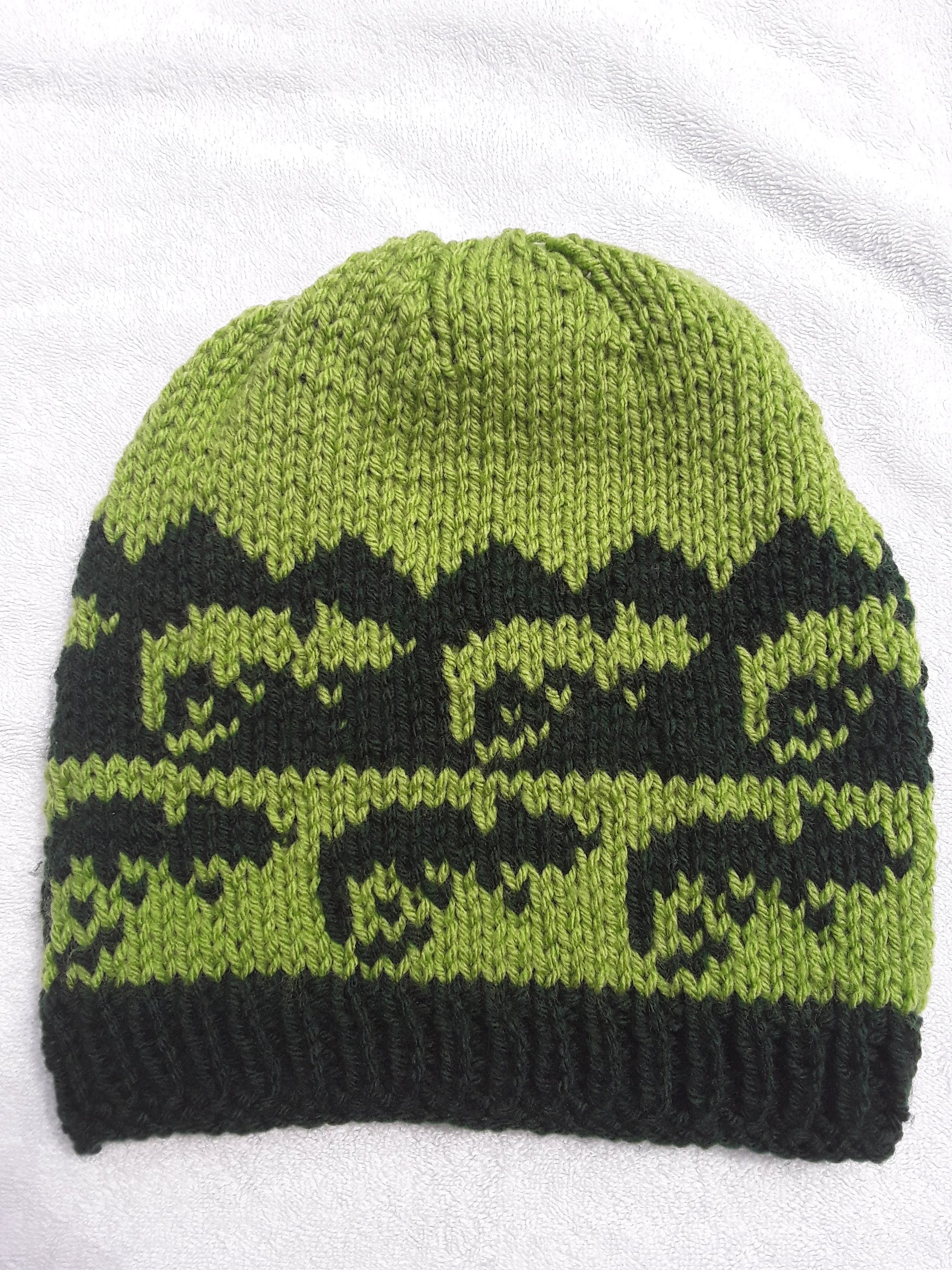 Lazy chameleons relax all around this cozy hat. It's the perfect hat for you to get comfy in too.