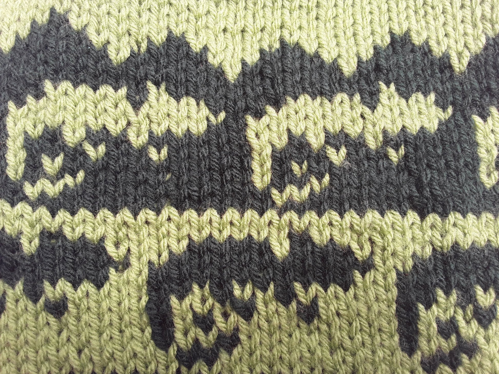 Handknit in Canada, 100% acrylic yarn. Can go in the washing machine; air dry recommended. One size fits most adults.
