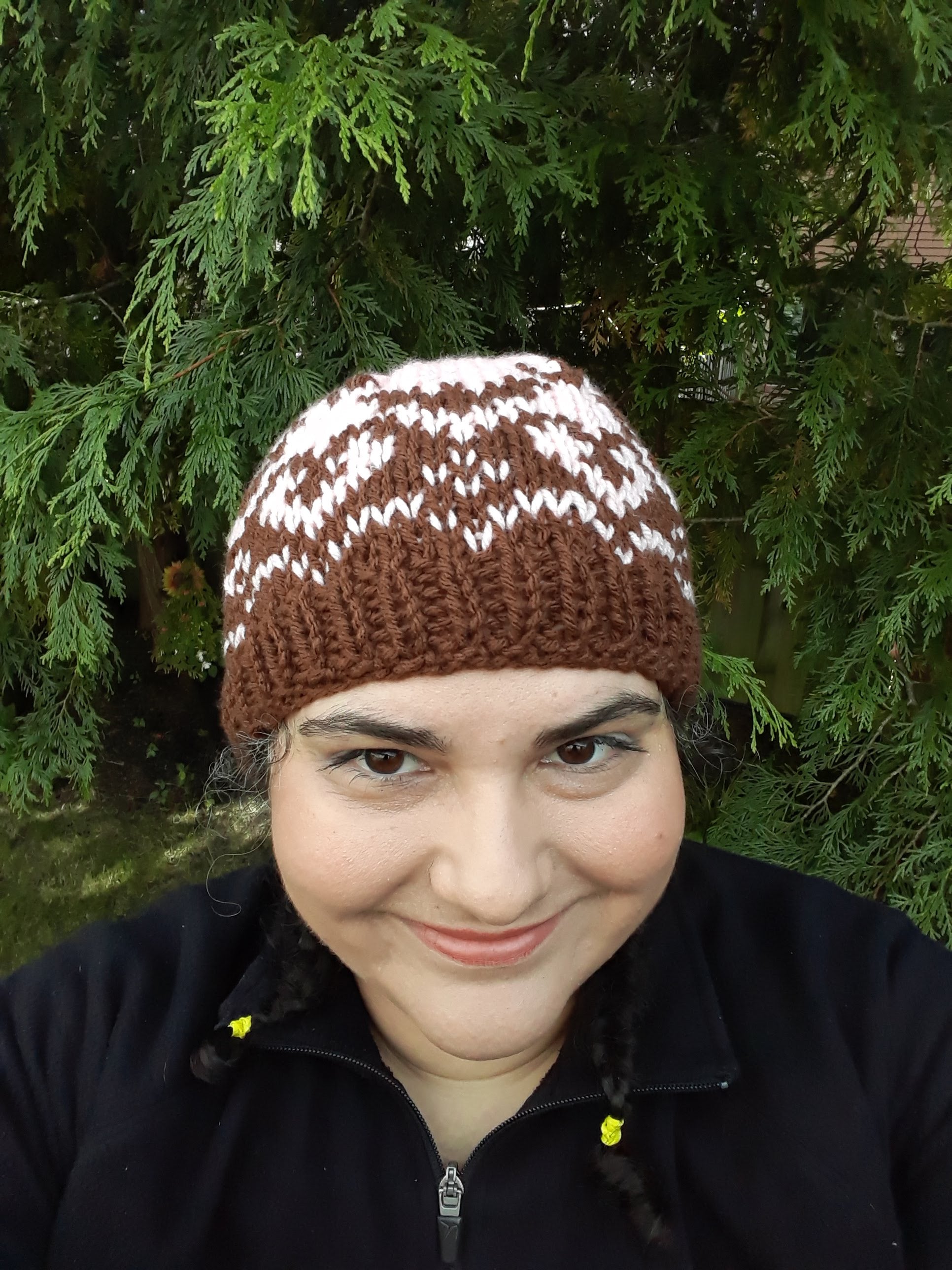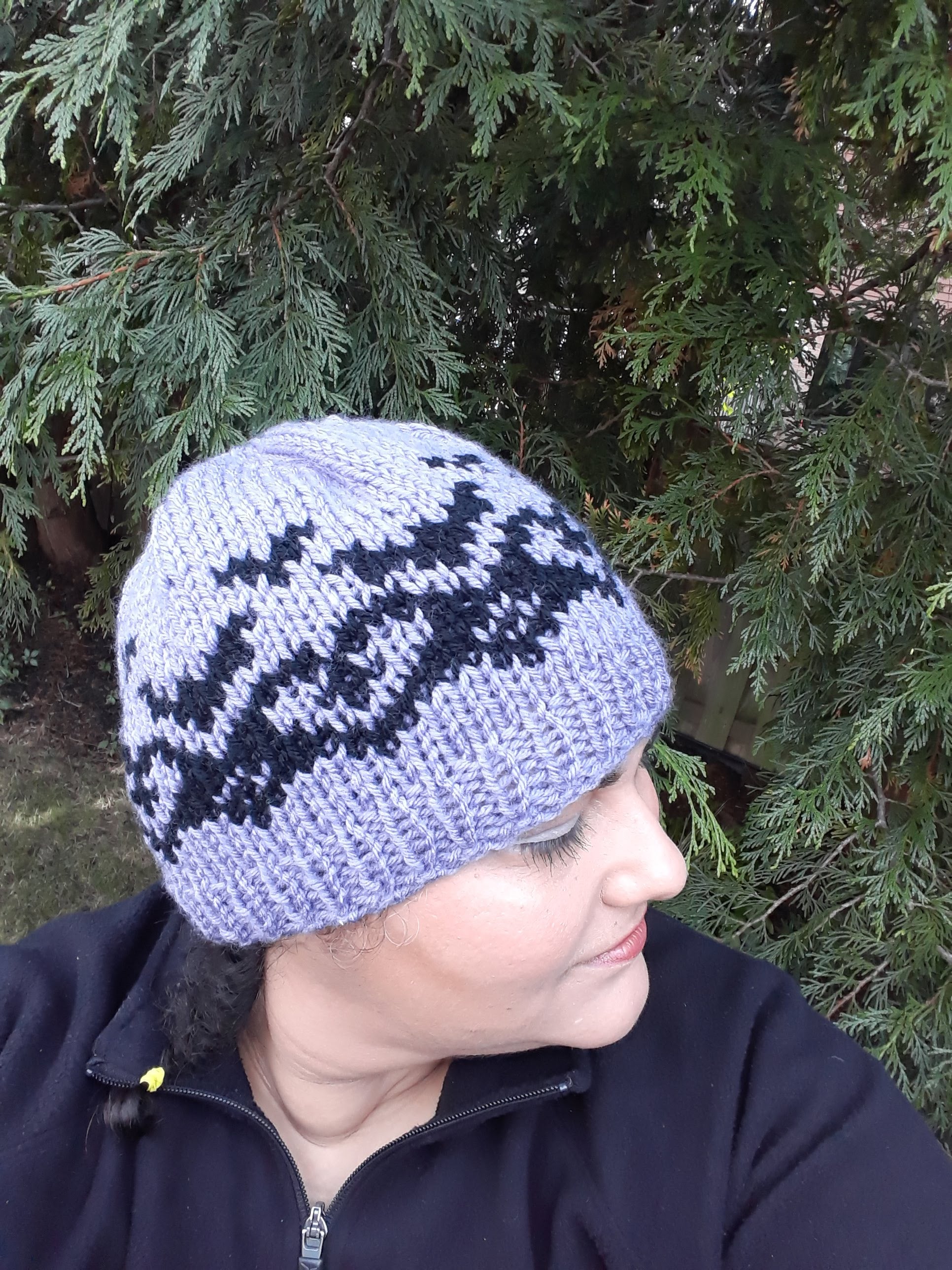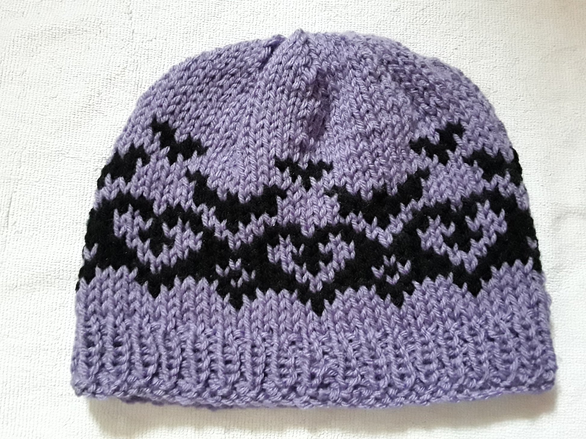 This design was inspired by sweet lolita fashion, gourmet cookies, and my love of all things Halloween. It's available in two colours, but please note that there is a slight length difference. The pink/brown one is shorter than a usual hat, meant to expose the ears (and whatever cute earrings your pair with it). The purple/black one is regular size, just long enough to cover the ears.