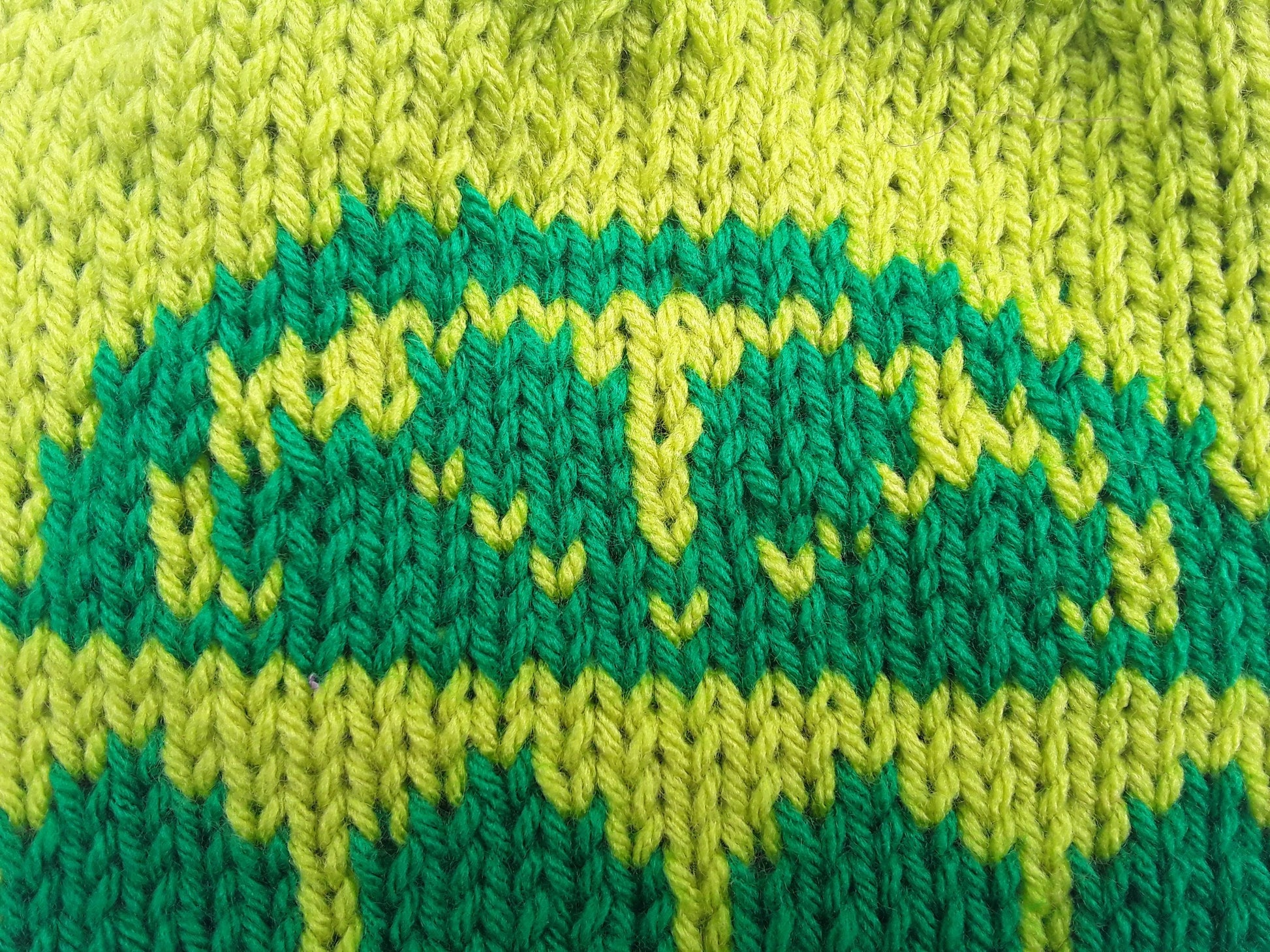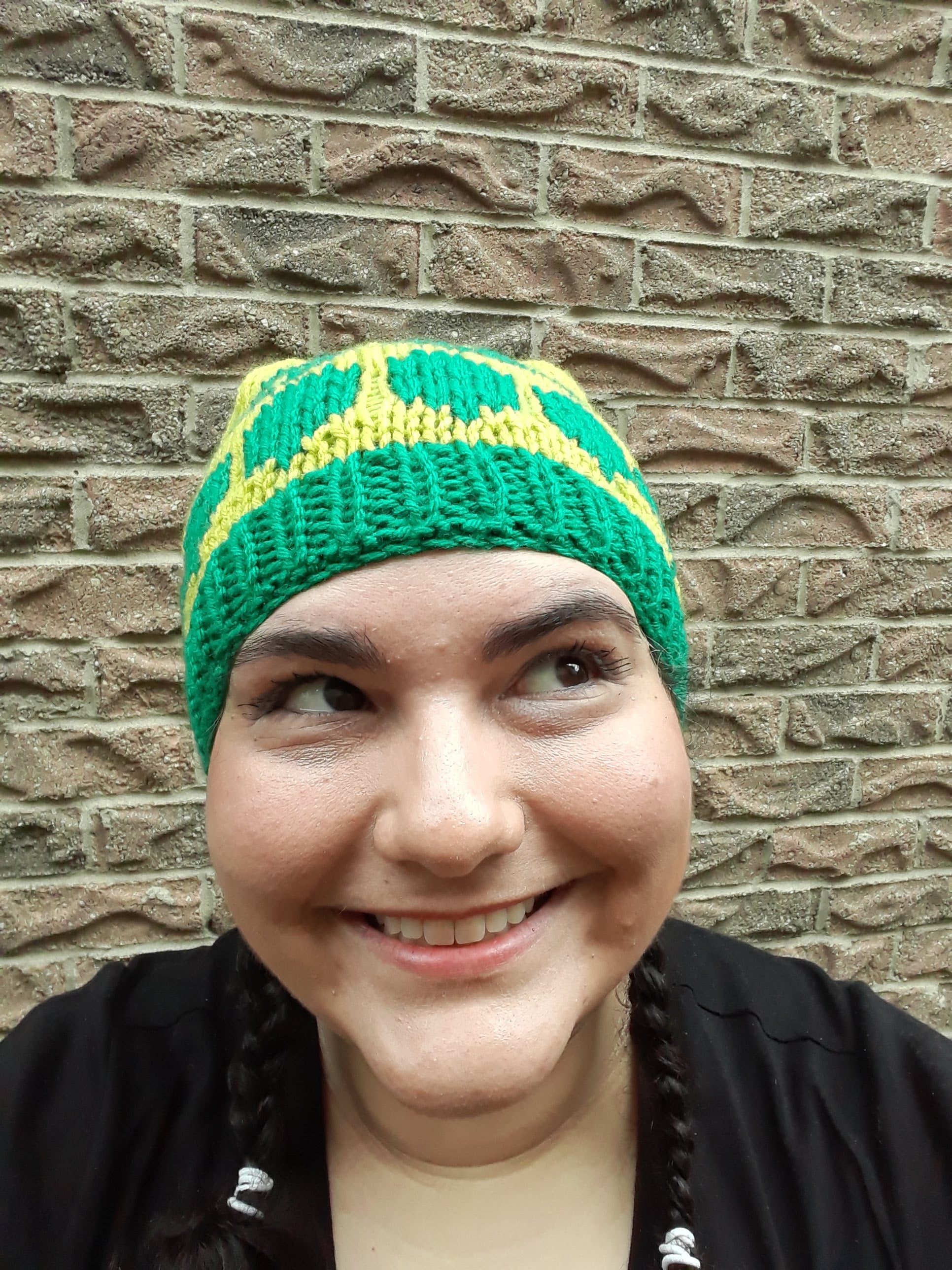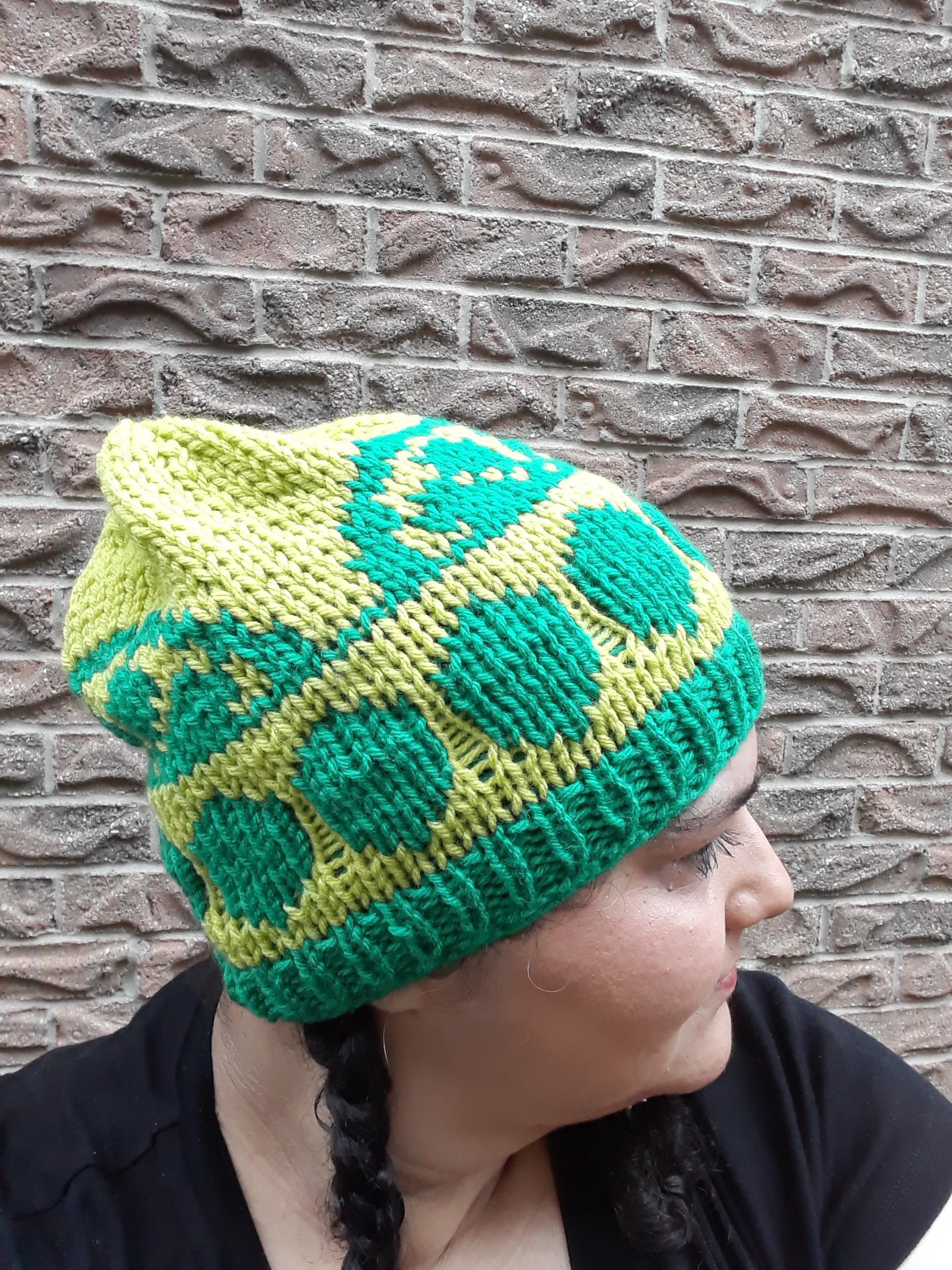 Handknit in Canada, 100% acrylic yarn. Can go in the washing machine; air dry recommended. One size fits most adults.