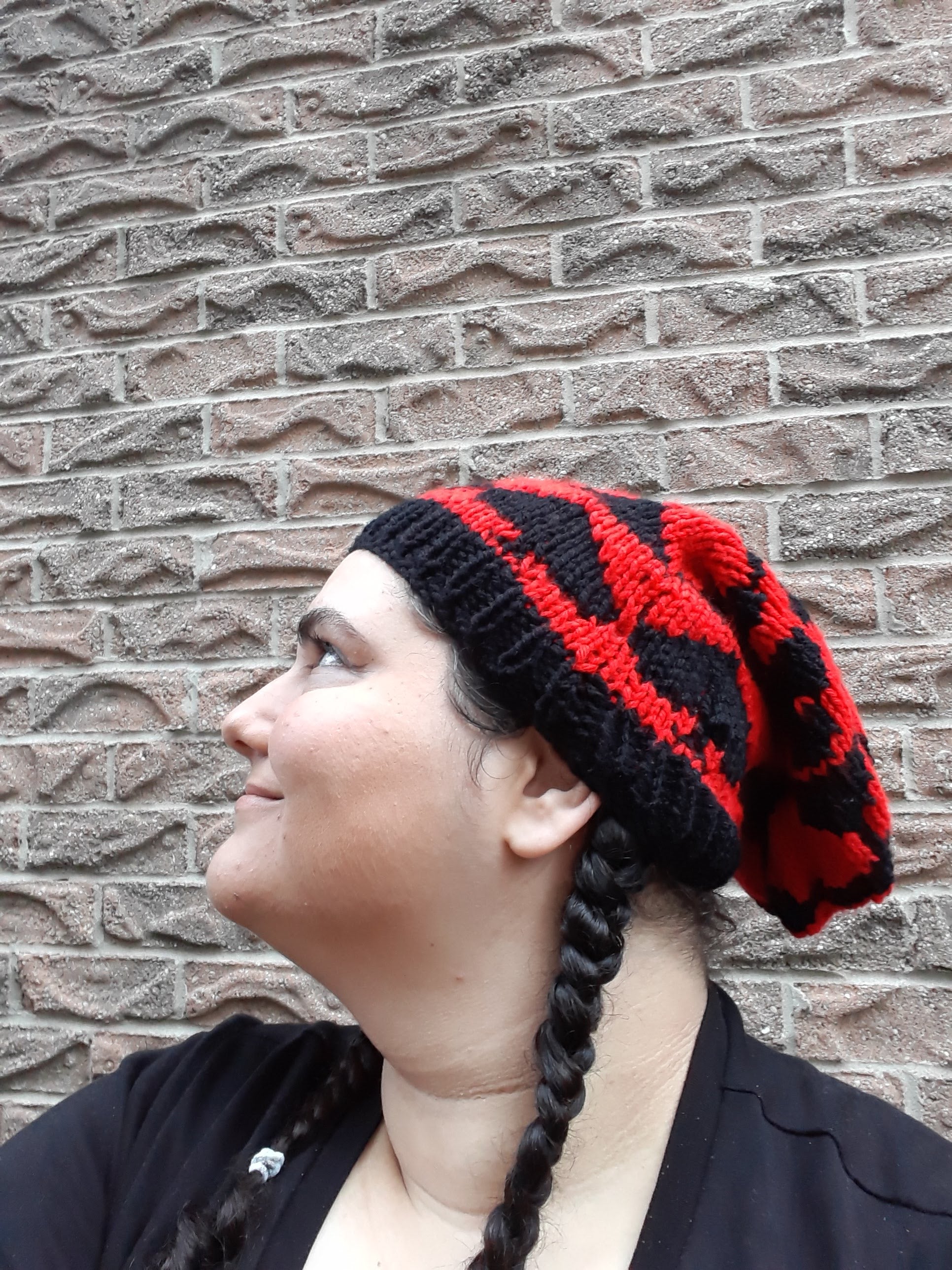 Here's an extra big hat for someone who loves playing card games. It was made as wide as my regular hats, but it's ultra long. You can wear it fully slouched or roll it up to the size you like.