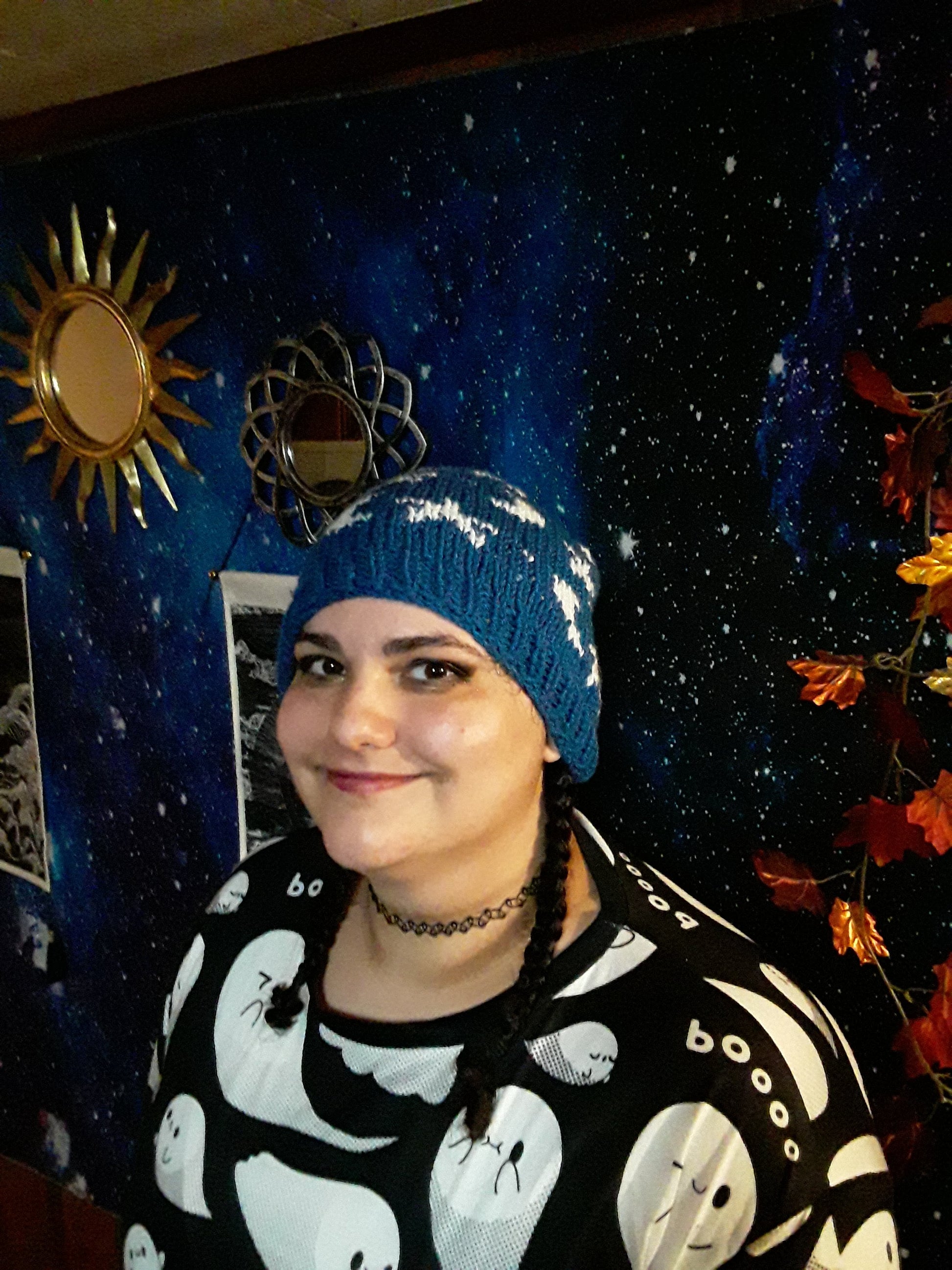 Do you need a gift for someone who looks to the stars? This comfy cozy hat is perfect for astronomy buffs, modern day wizards, and fans of the night sky.