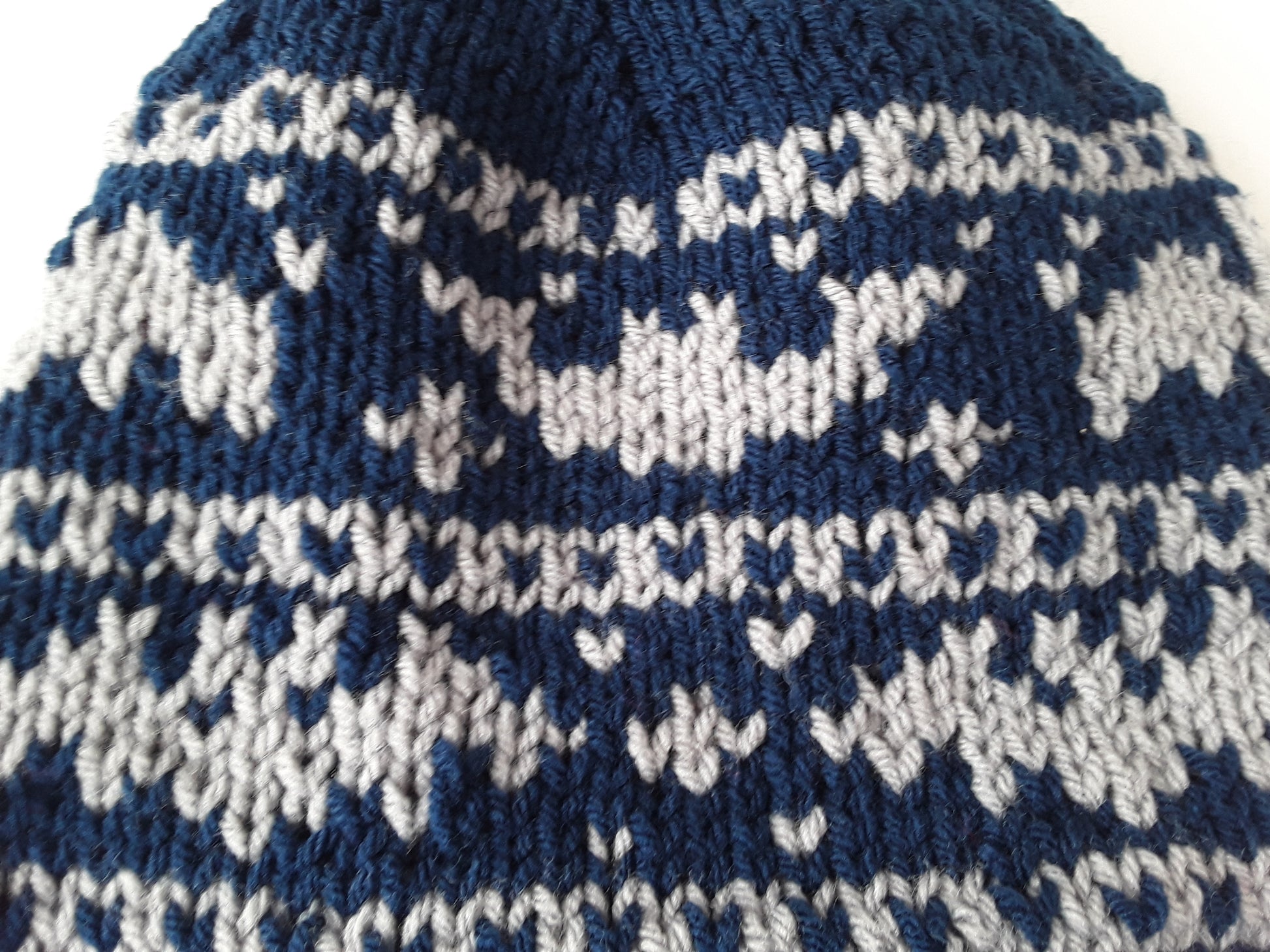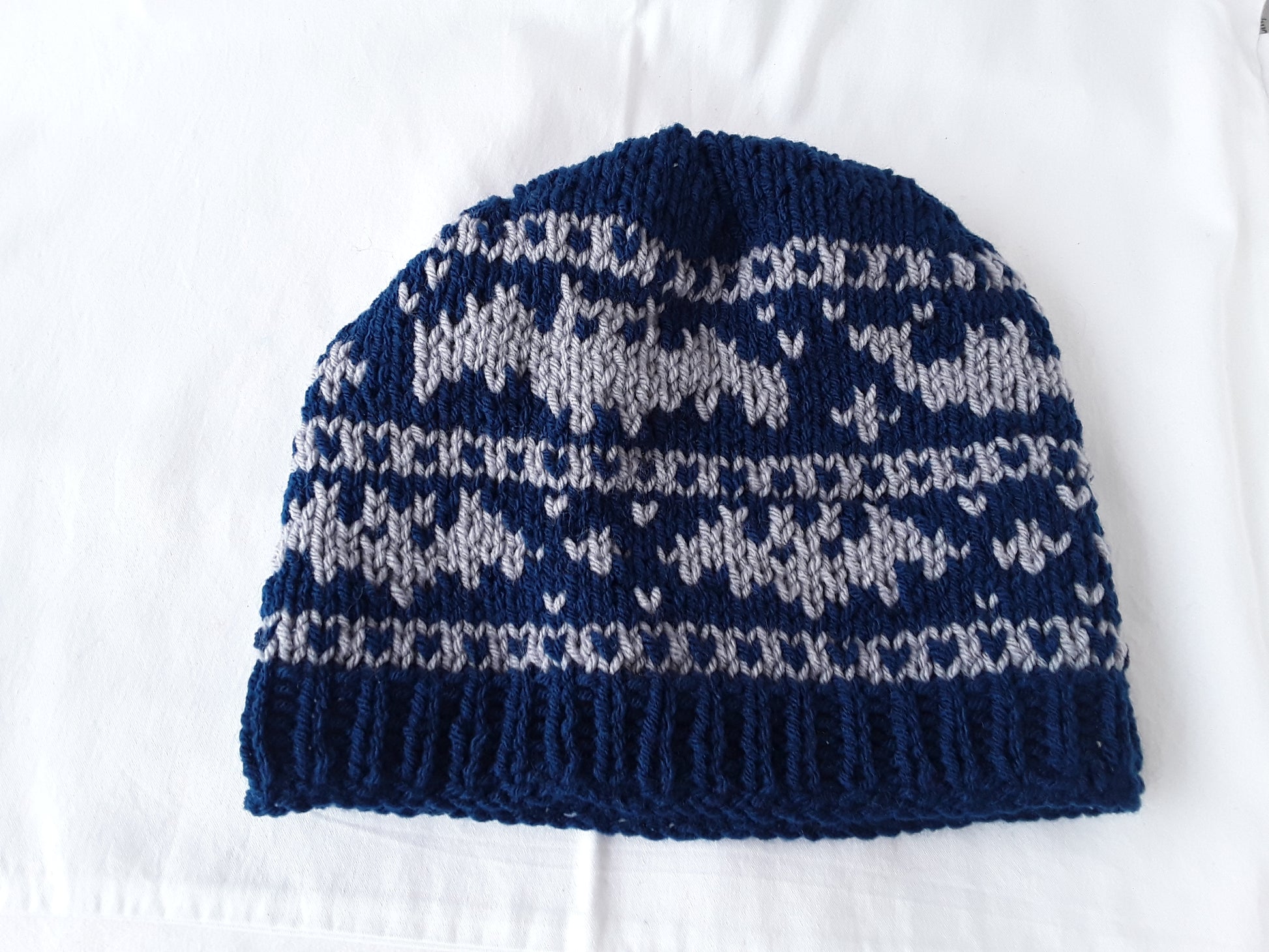 Take flight in this cozy hat for bat lovers. Navy blue and silver go with anyone's style.