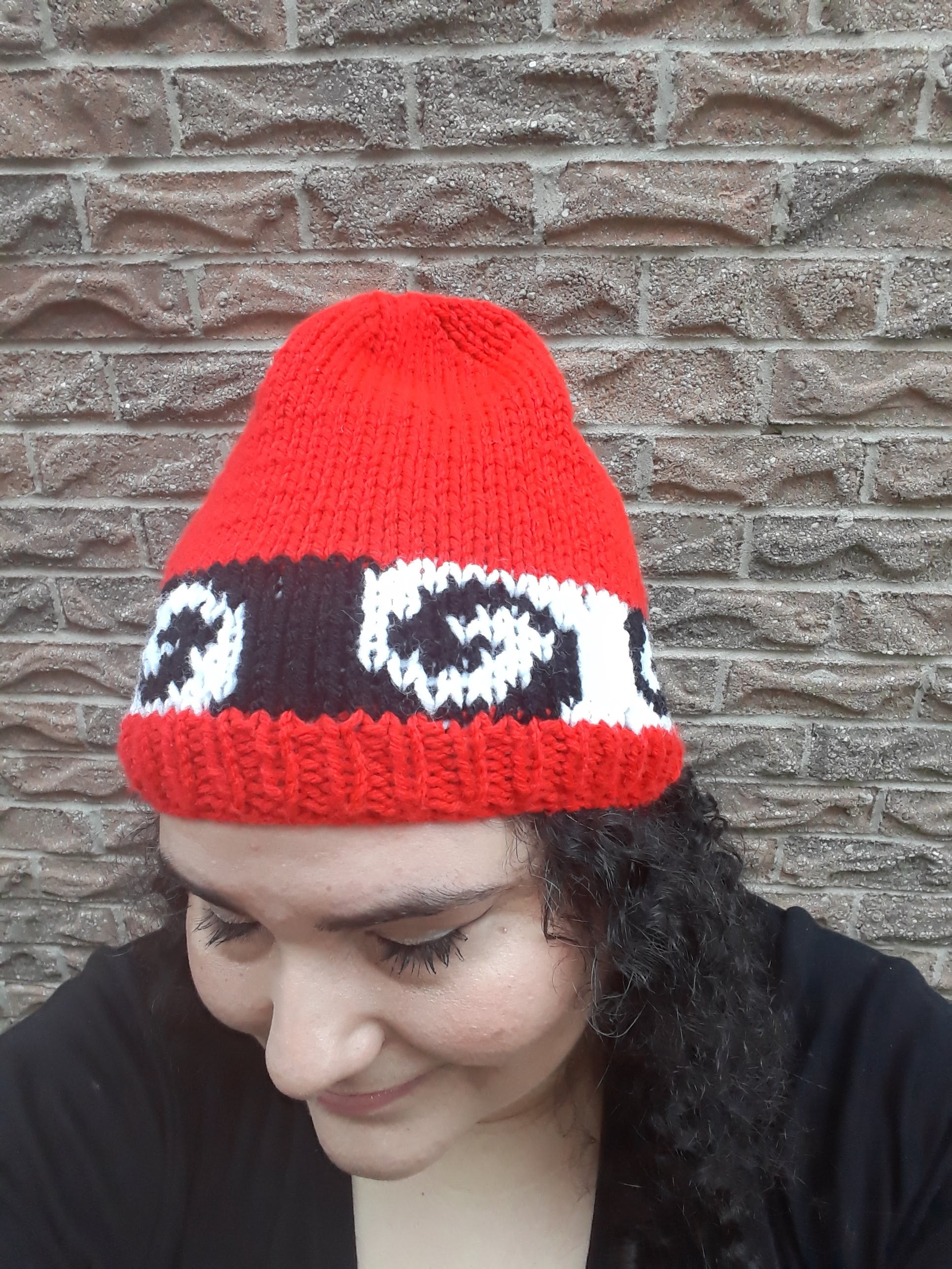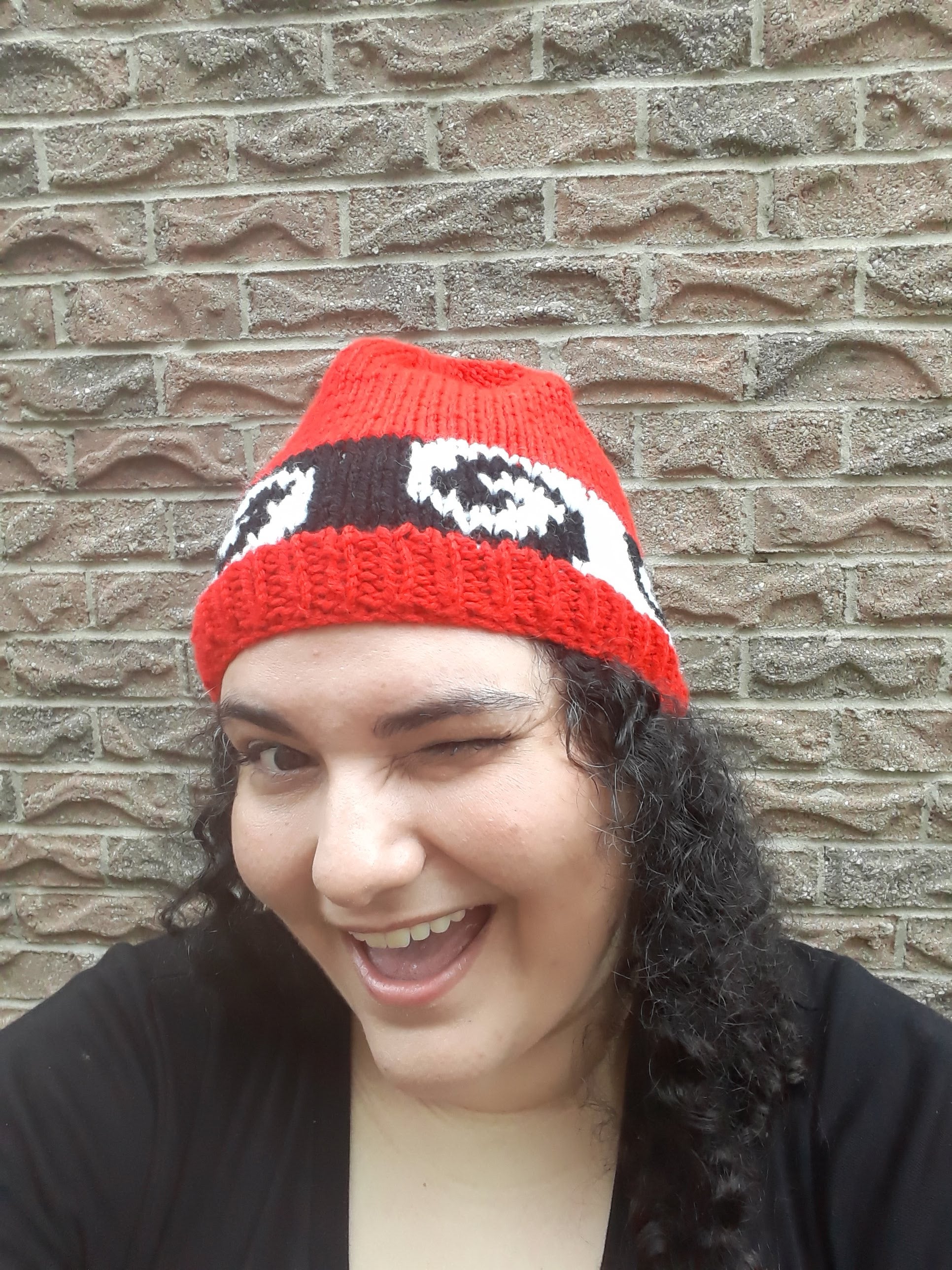 Red, Black, and White Swirl Hat