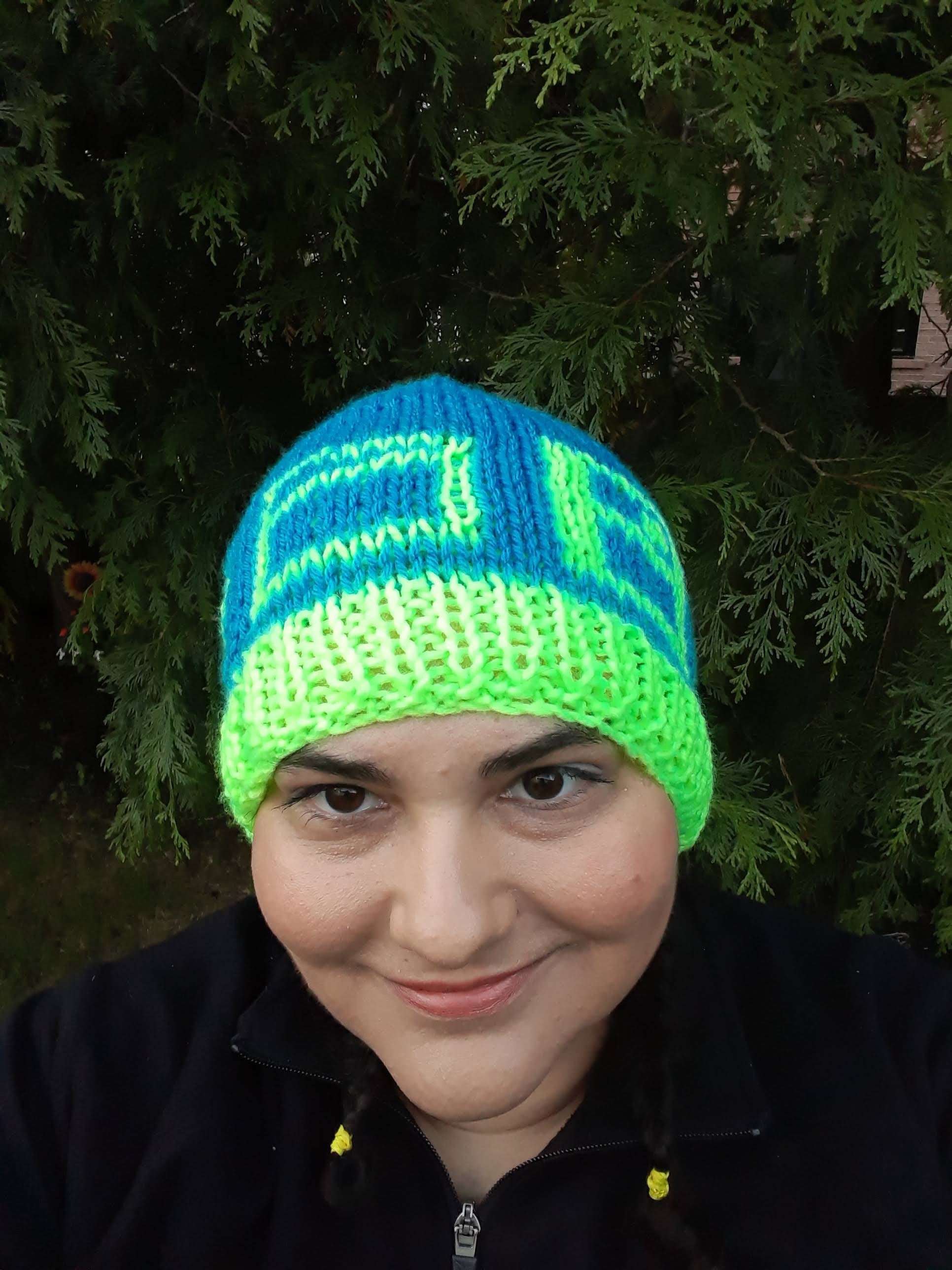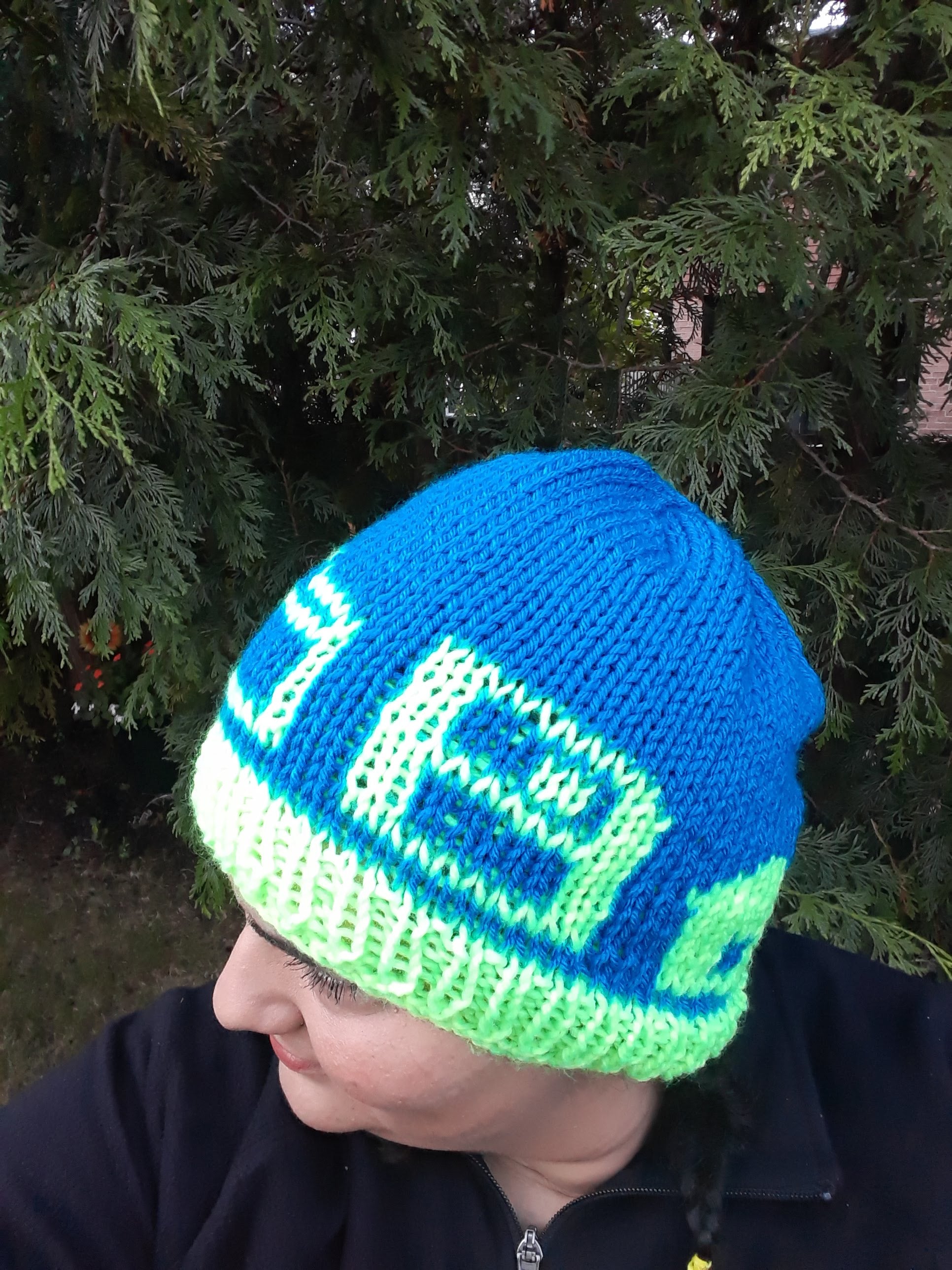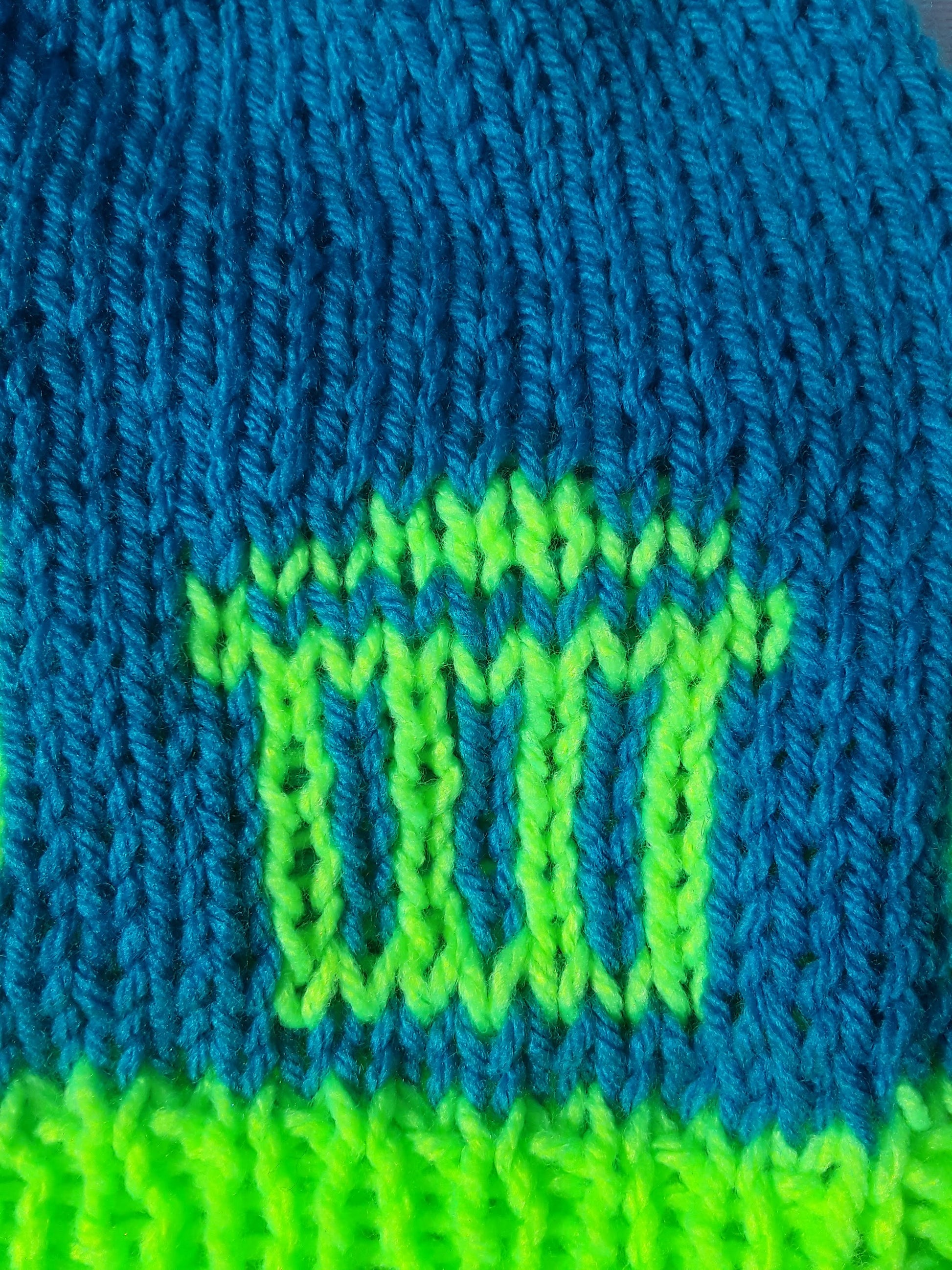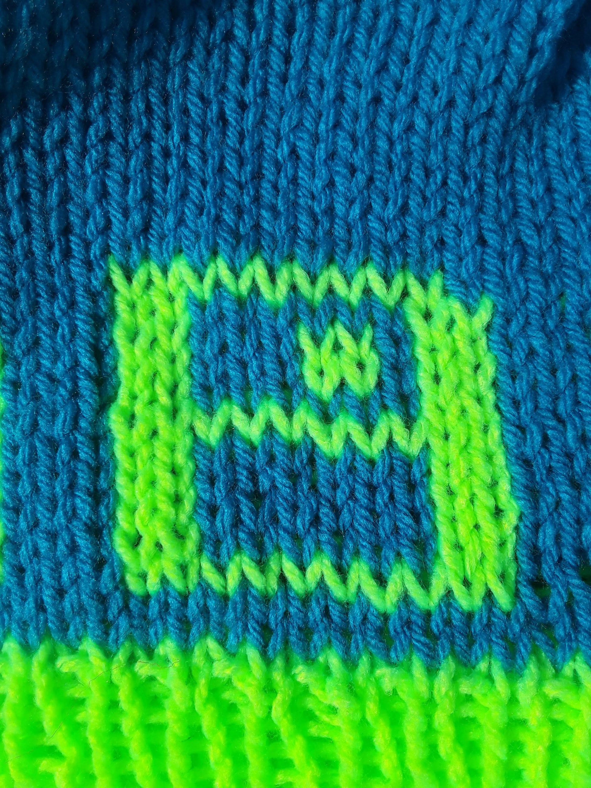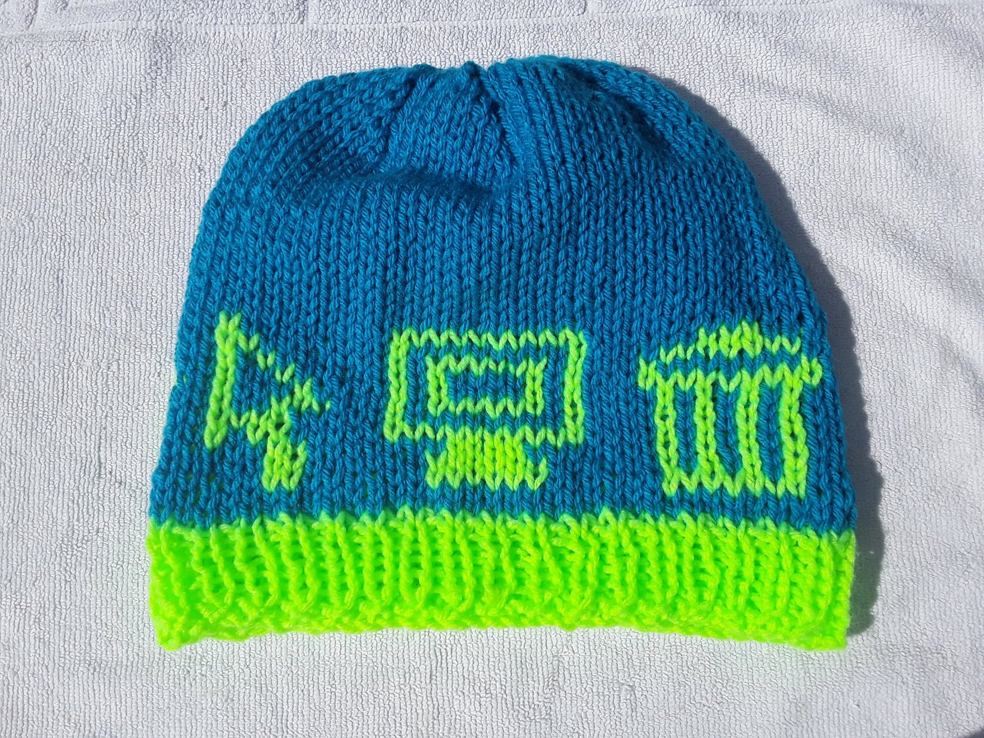 Capture the retro look of 90s computing with a neon green icons on a bright blue screen. This hat is encircled with the images for a monitor, trash, file, save, home, and a cursor. Relive your nerdy childhood (or gift the aesthetic to a young person).