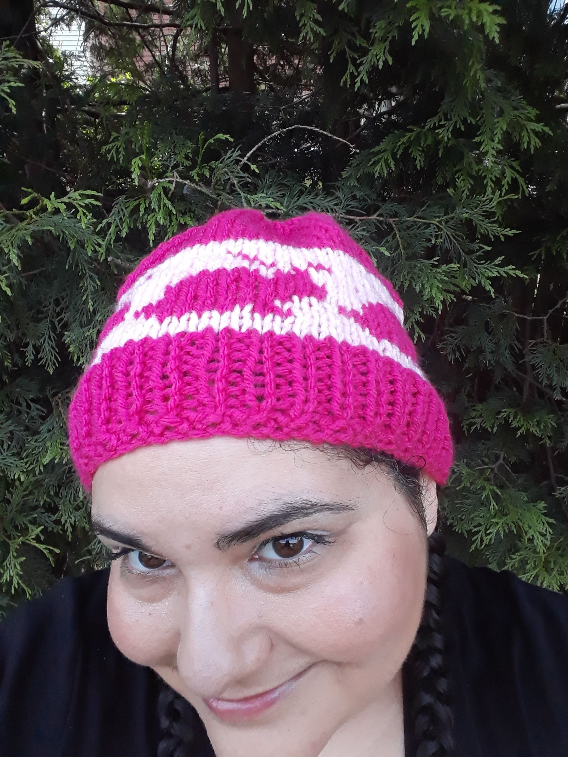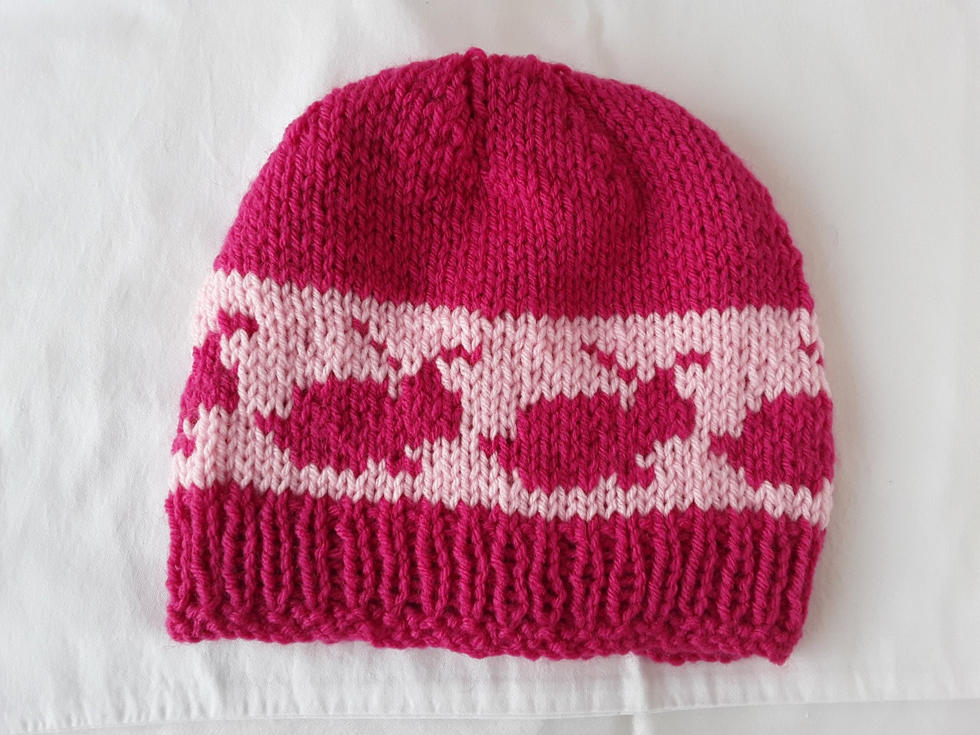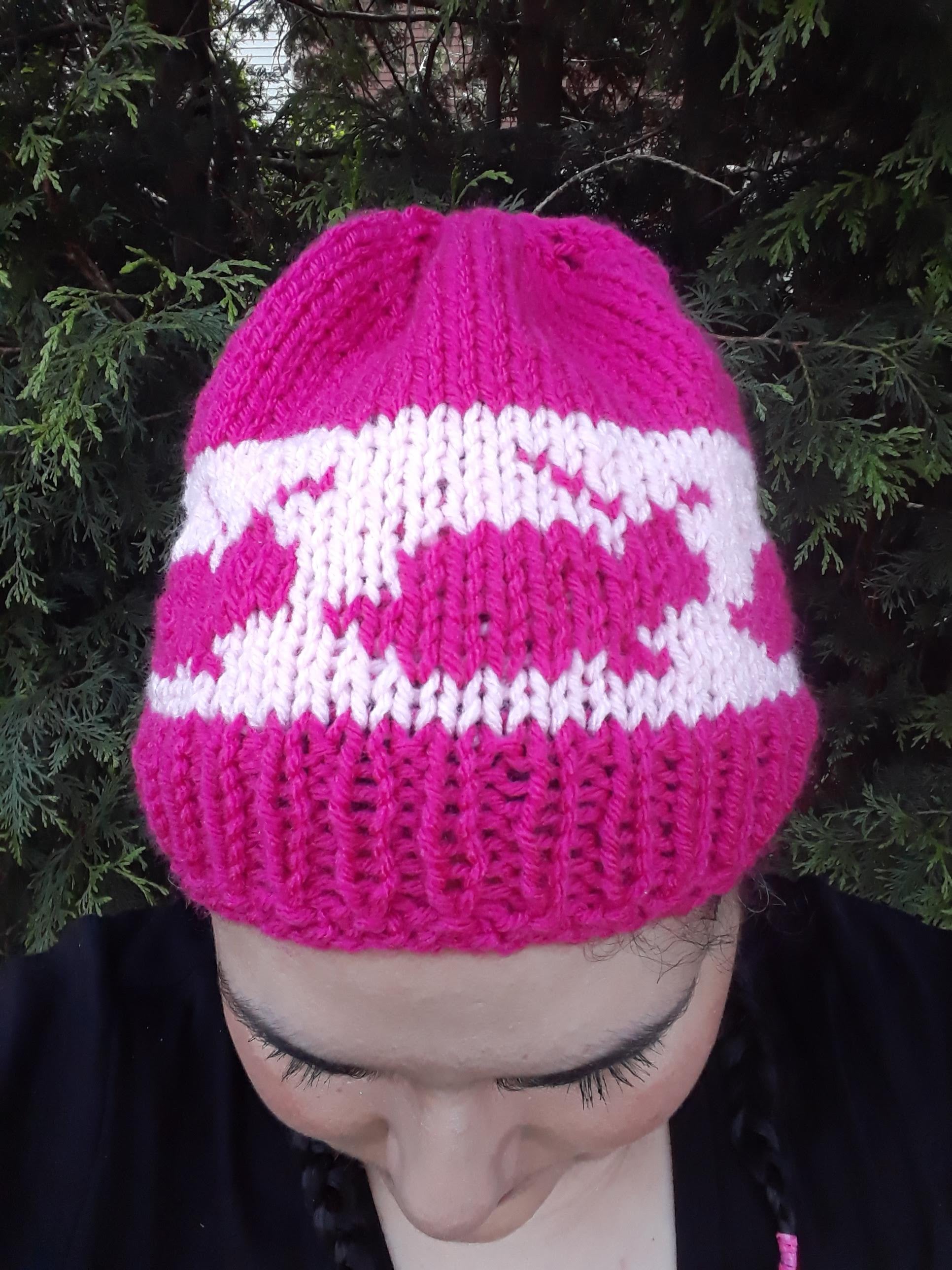 Treat yourself or a special friend to some cuteness! This hat is covered in sweet pink bunnies. Bright enough for winter but soft enough for spring, this design will cheer up its wearer no matter what the weather.