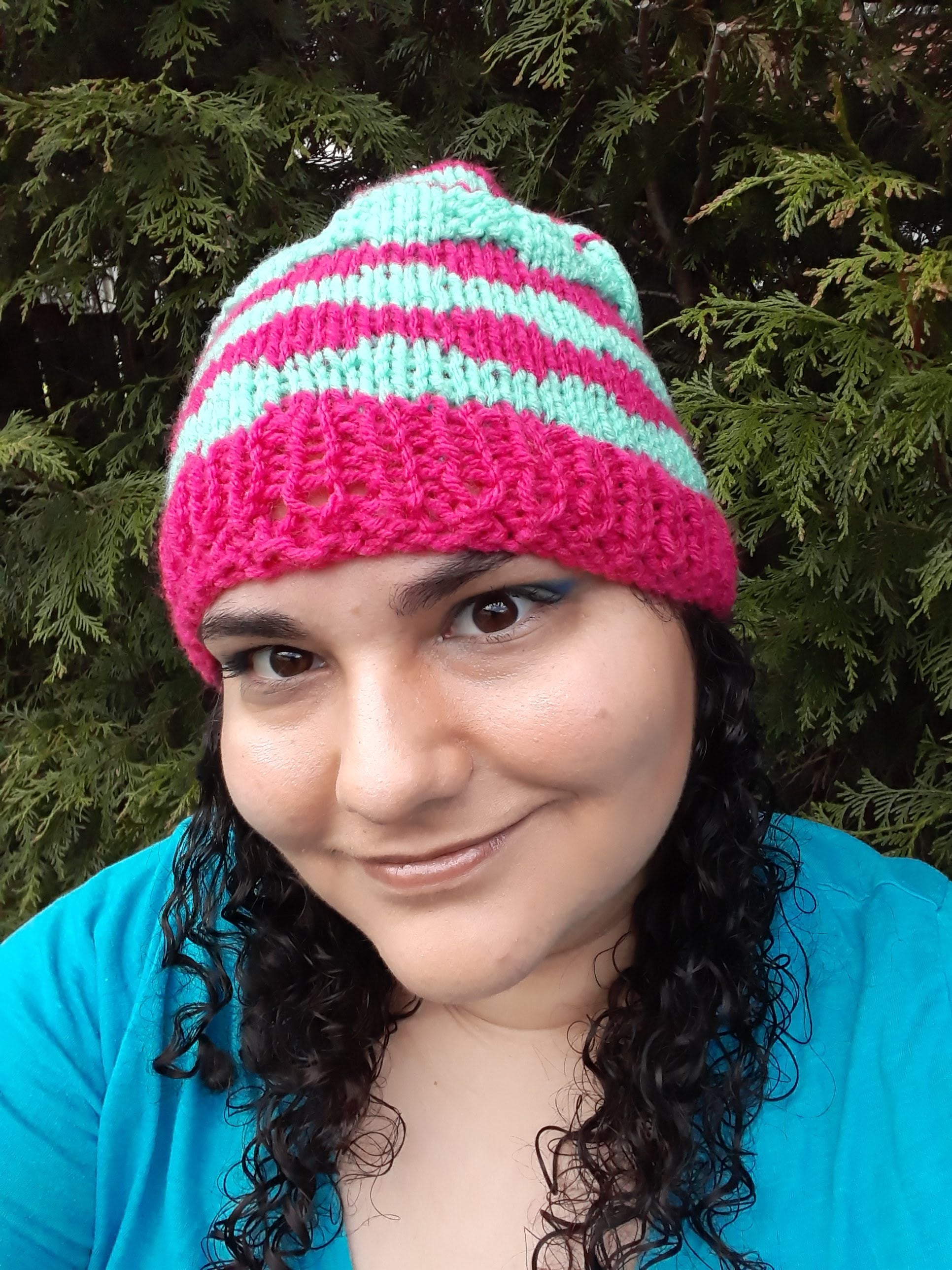 Teal and Coral Textured Hat
