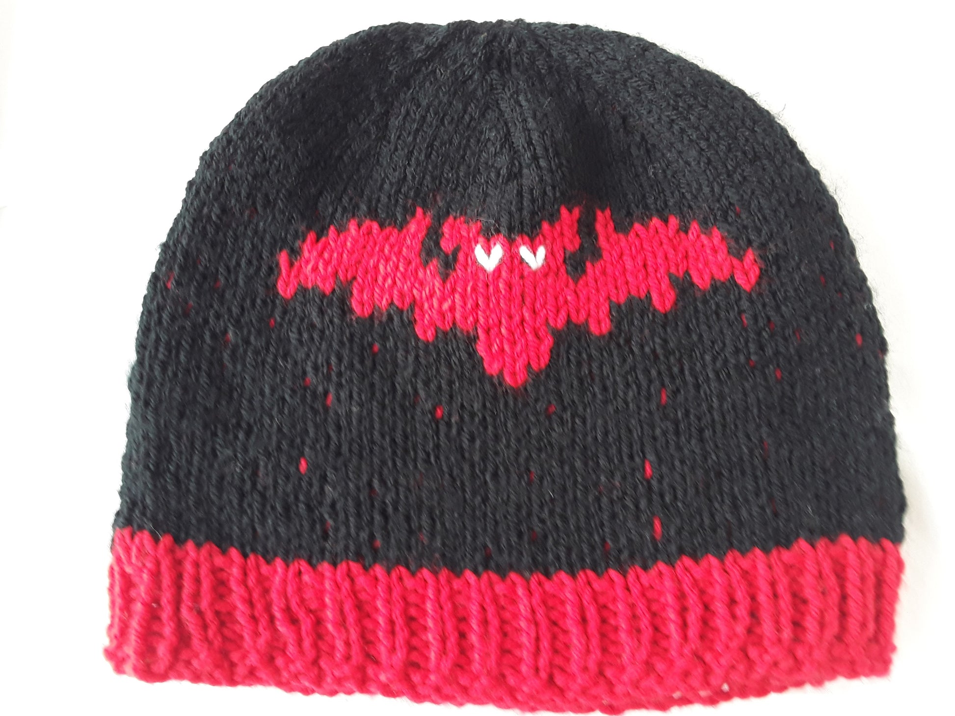 Handknit in Canada, 100% acrylic yarn. Can go in the washing machine; air dry recommended. One size fits most adults.