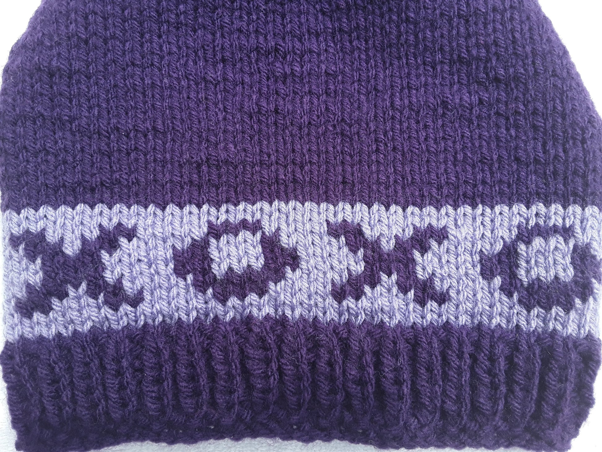 Handknit in Canada, 100% acrylic yarn. Can go in the washing machine; air dry recommended. One size fits most adults.